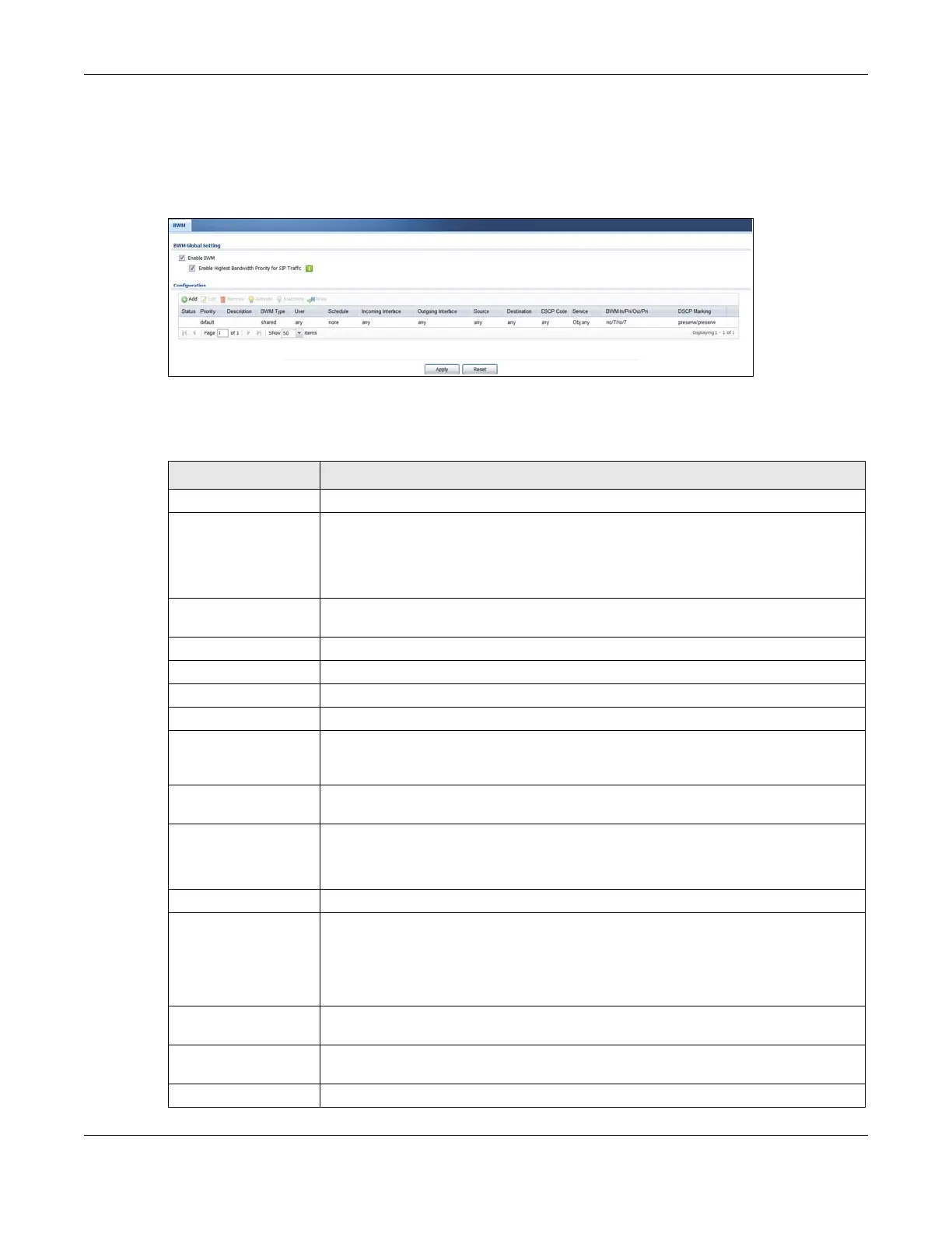Priority This field displays a sequential value for each bandwidth management policy and it is