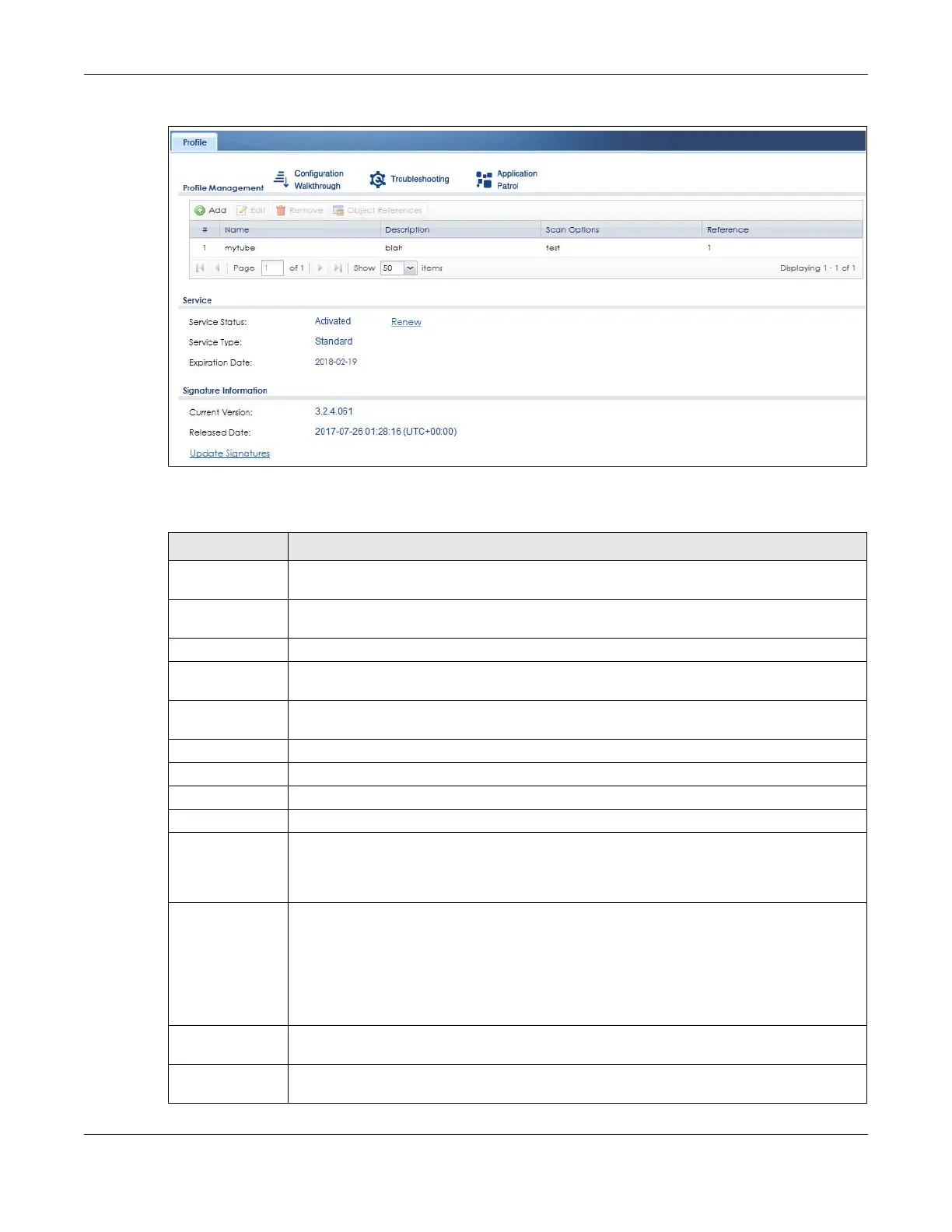 The following fields display information on the current signature set that the Zyxel Device is