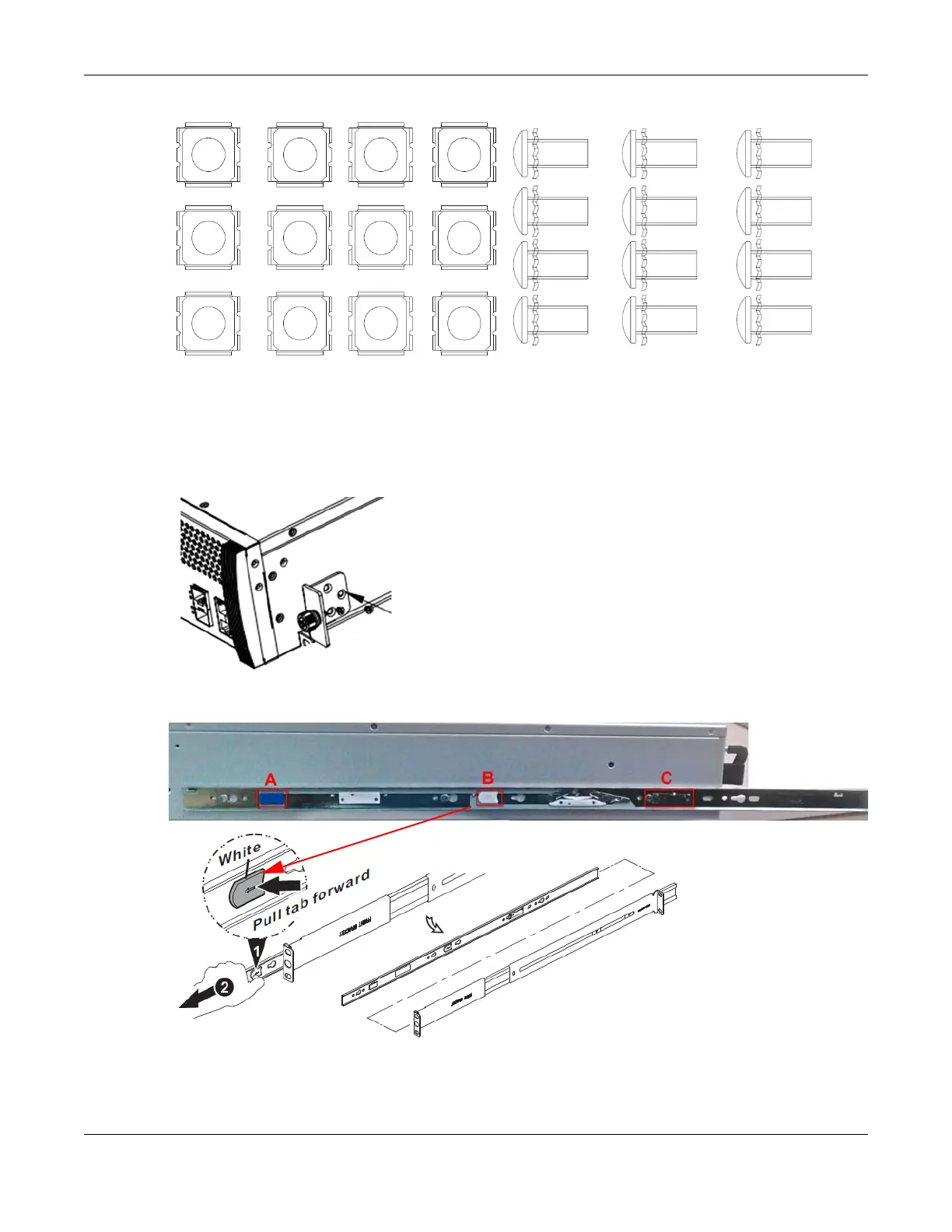 2 To separate the inner and outer railings, press tab B (white) and slide out the outer railing.