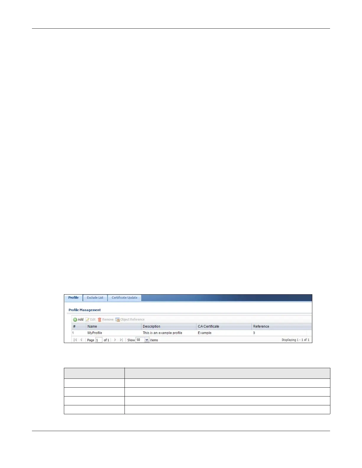 Table 282 Configuration > UTM Profile > SSL Inspection > Profile