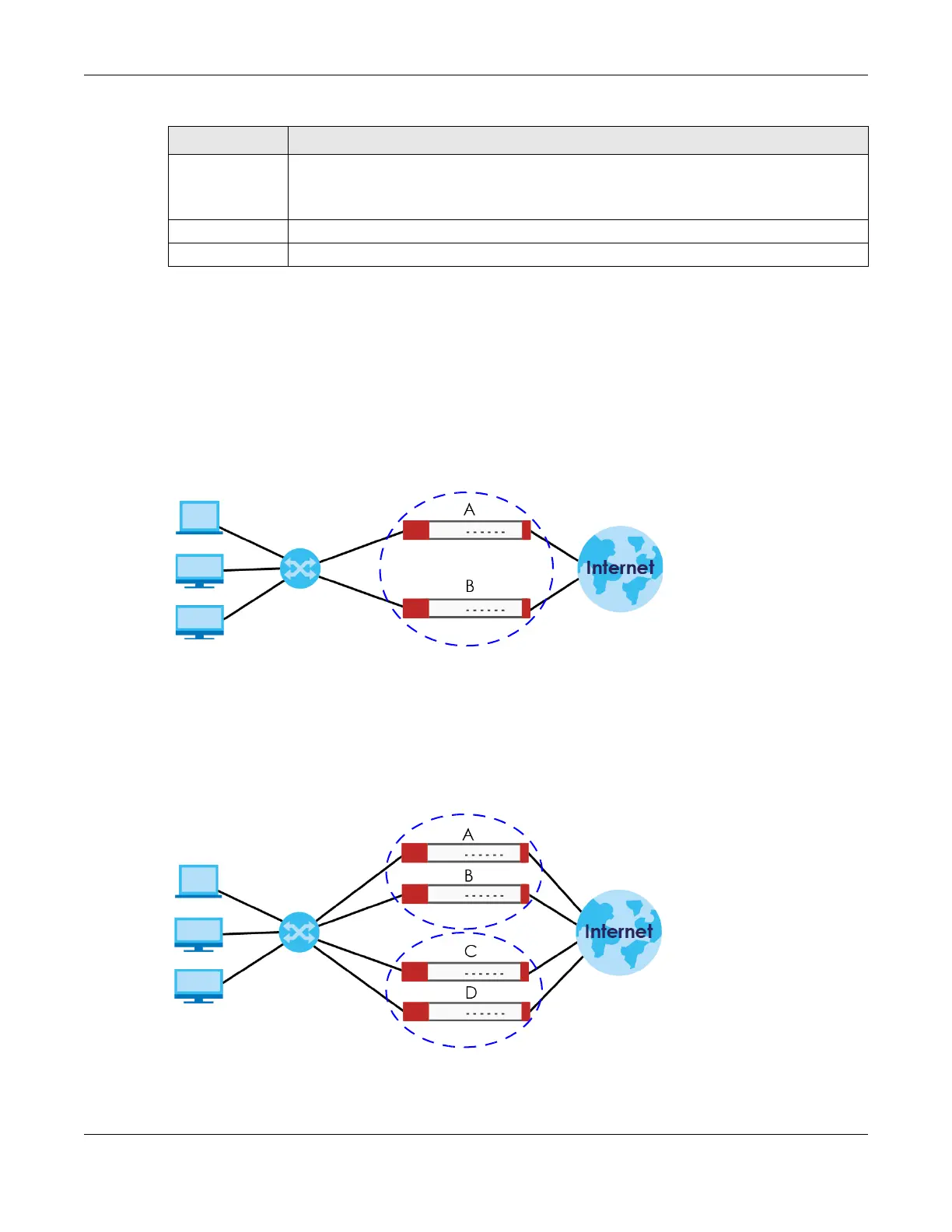 each virtual router. In the following example, Zyxel Devices A and B form a virtual router that uses cluster