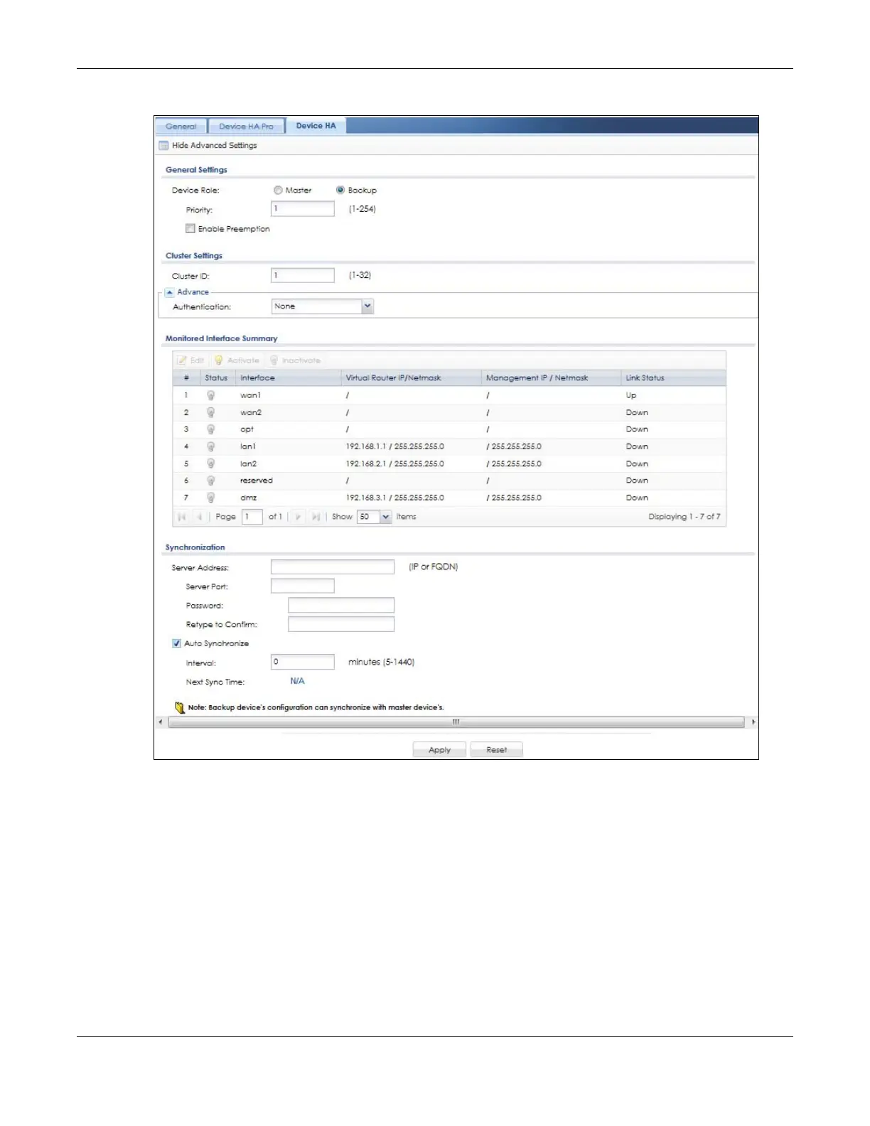 Figure 541 Configuration > Device HA > Device HA
