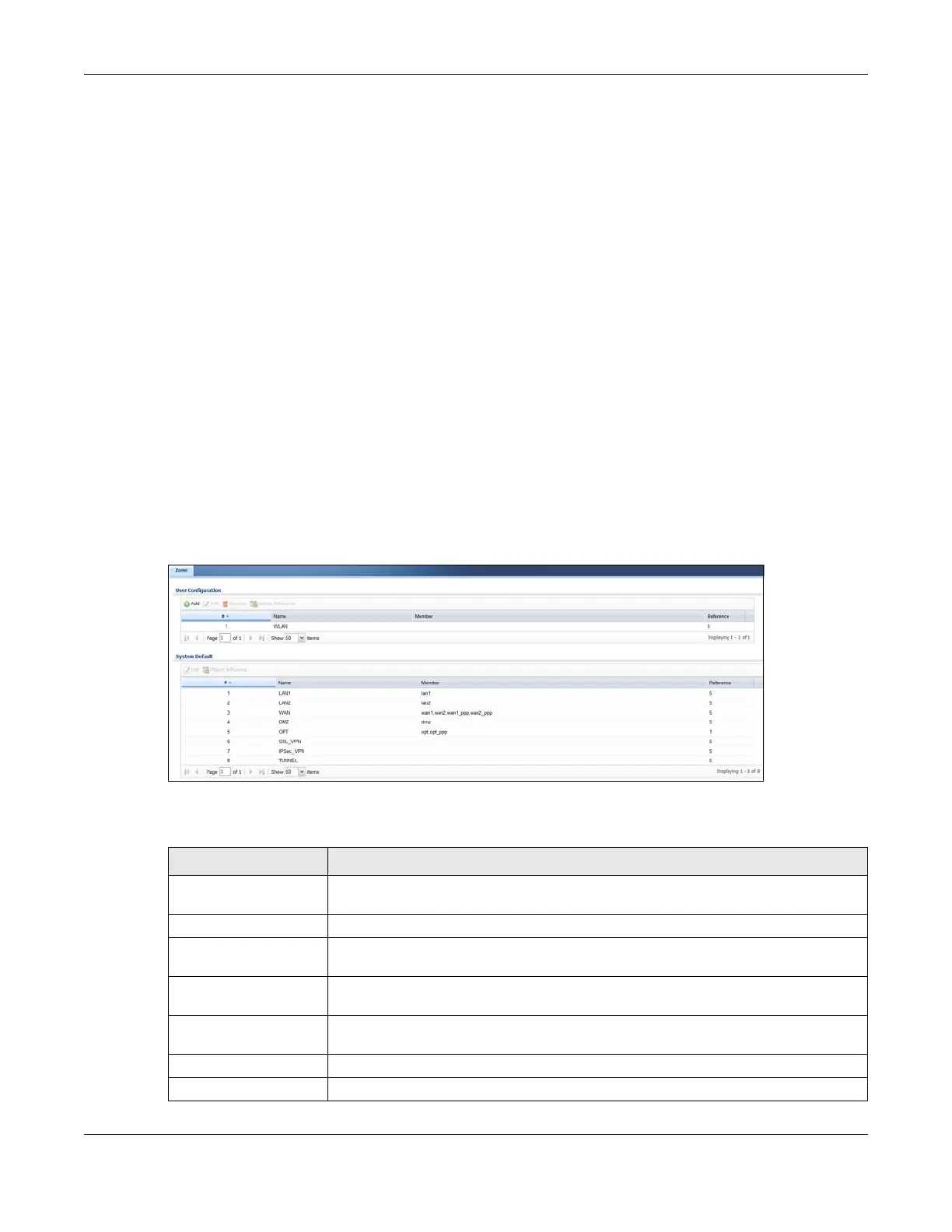 Table 291 Configuration > Object > Zone