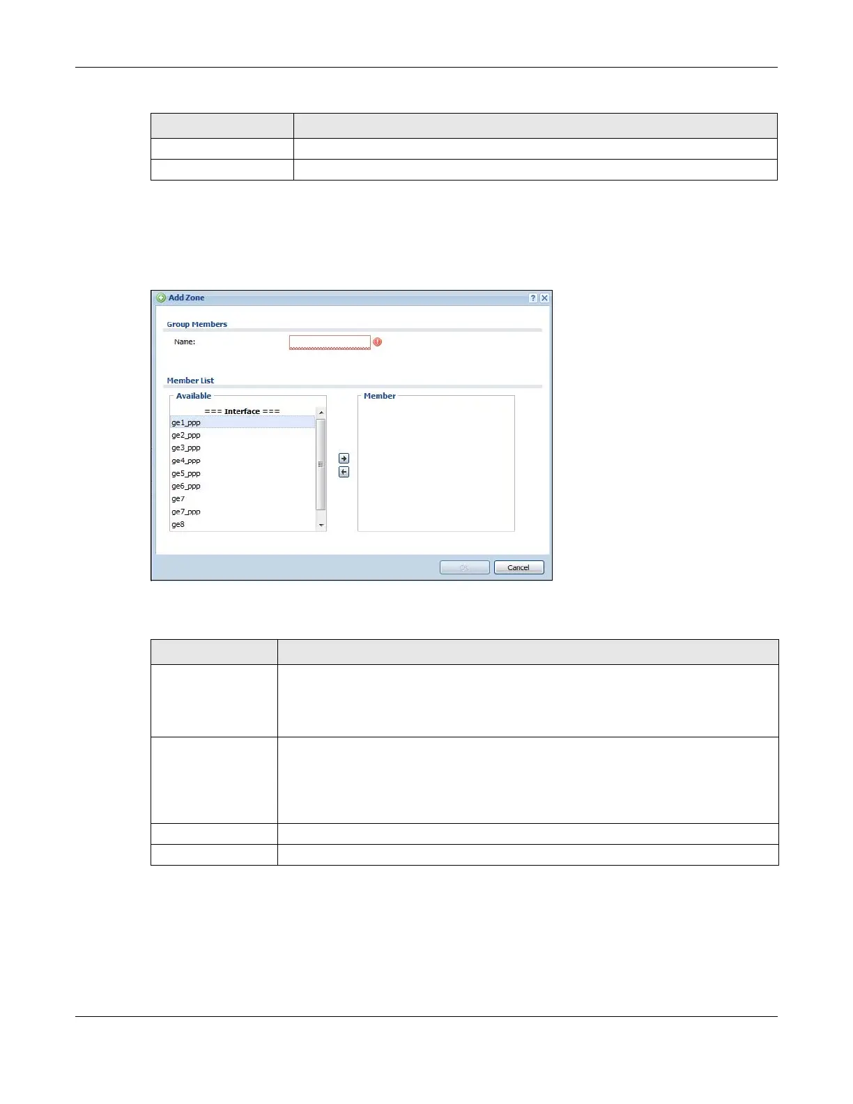 Member List Available lists the interfaces and VPN tunnels that do not belong to any zone. Select the