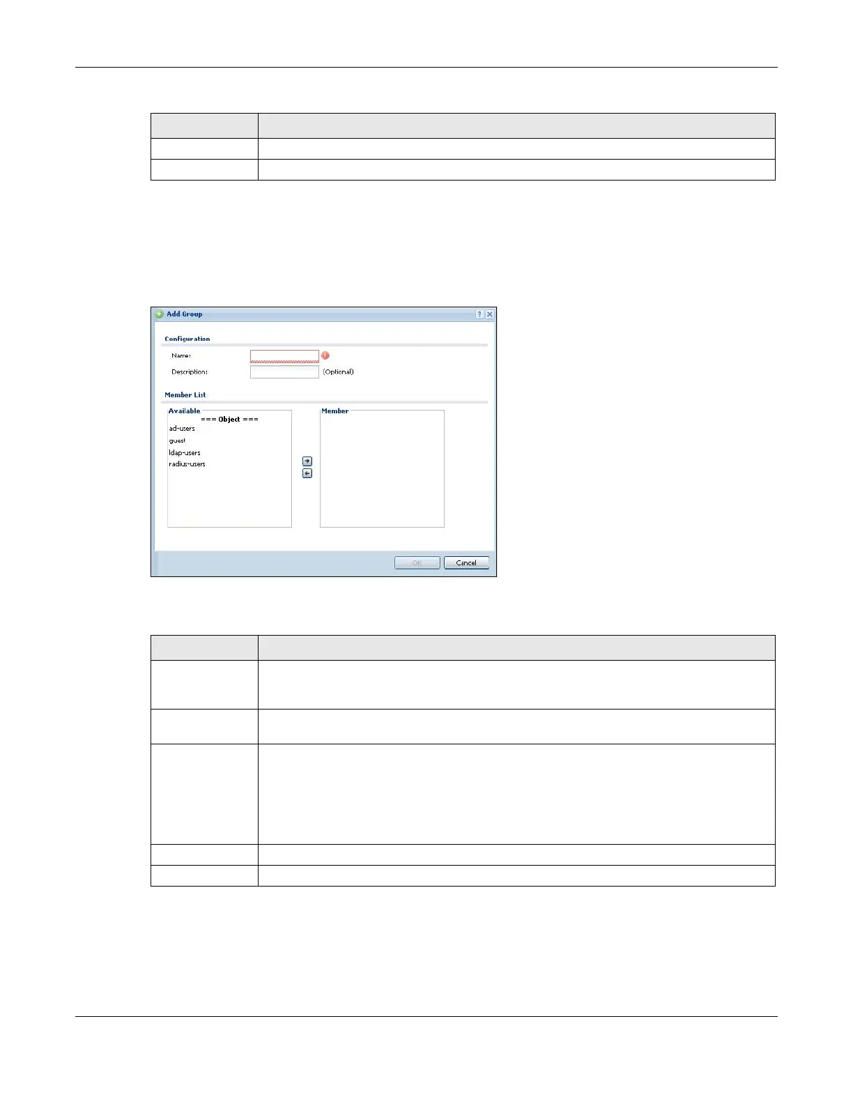 Table 296 Configuration > Object > User/Group > Group (continued)
