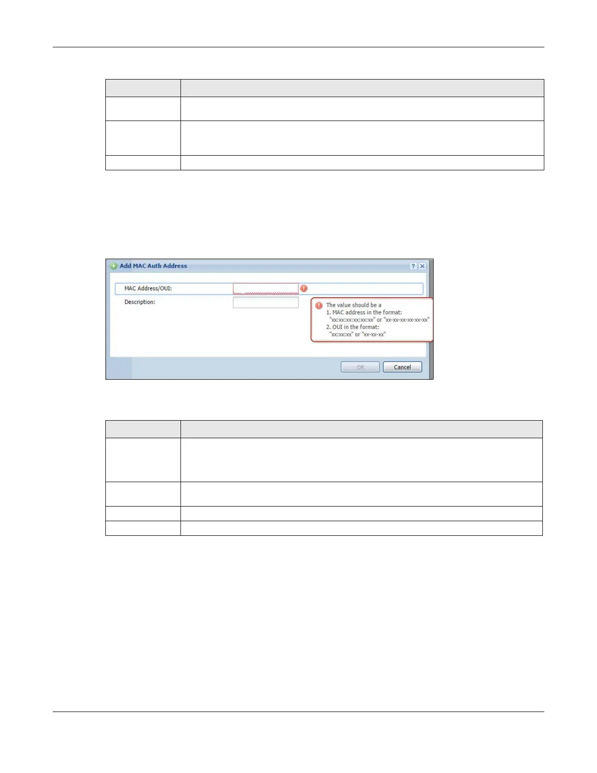 clients for MAC authentication using the Zyxel Device local user database. The OUI is the first