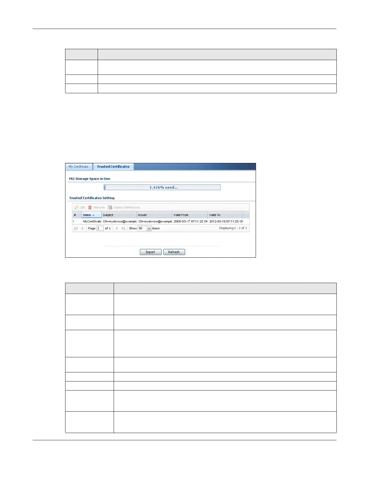 Table 351 Configuration > Object > Certificate > Trusted Certificates