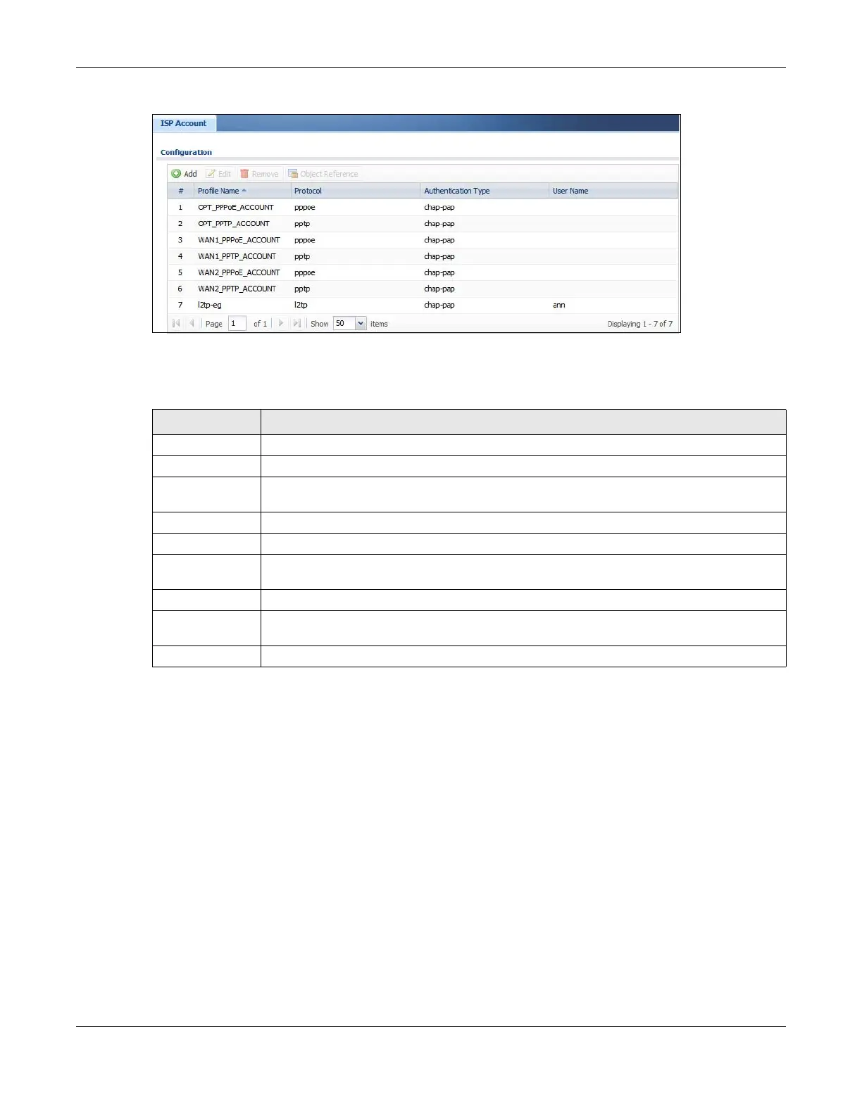 Table 354 Configuration > Object > ISP Account