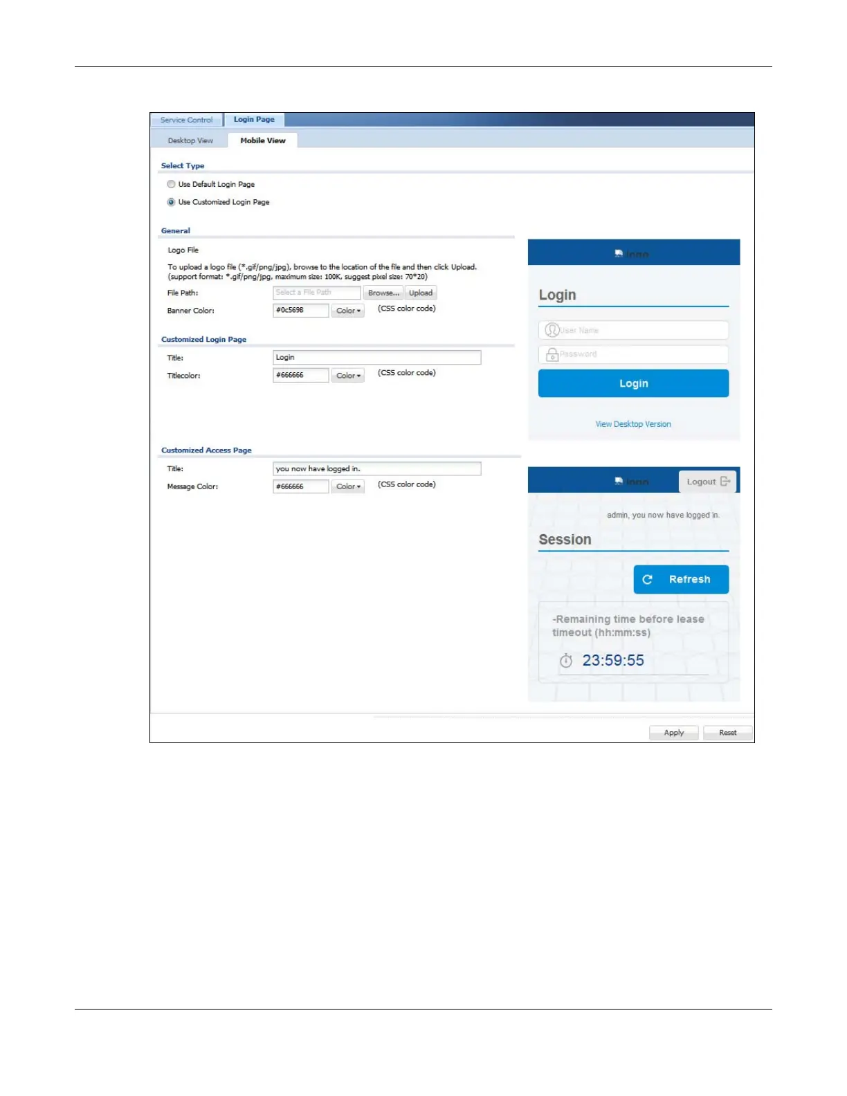 Figure 649 Configuration > System > WWW > Login Page (Mobile View)