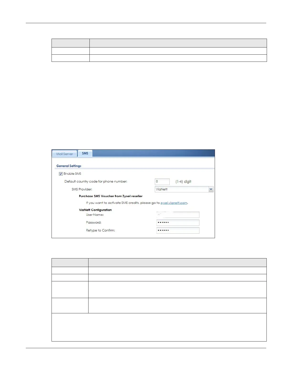 devices. At the time of writing, the Zyxel Device uses ViaNett as the SMS gateway to help forward SMS