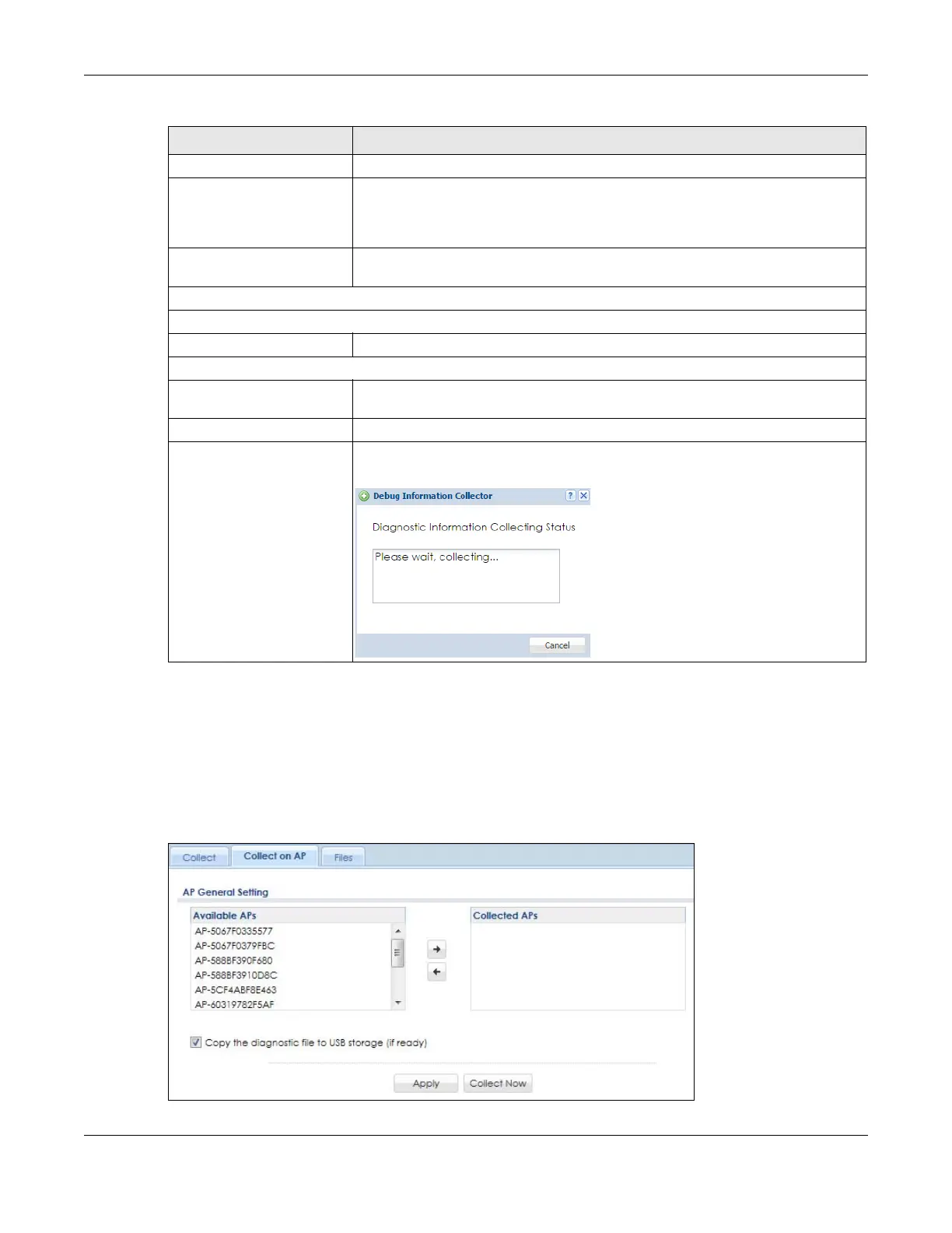 support during troubleshooting. Click Maintenance > Diagnostics > Collect on AP to open the Collect on