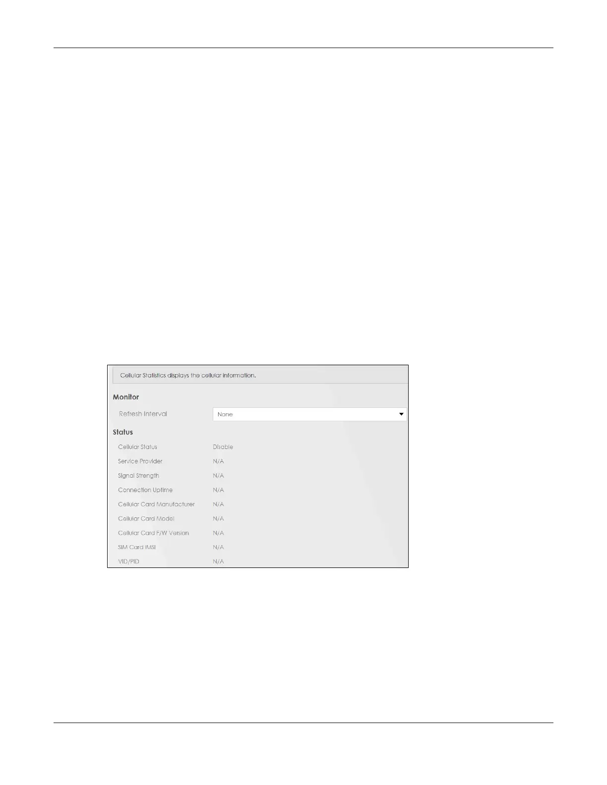 To open this screen, click System Monitor > Cellular Statistics. Cellular information is available on this