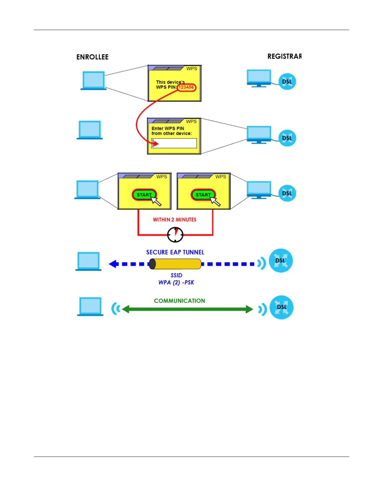 When two WPS-enabled devices connect, each device must assume a specific role. One device acts
