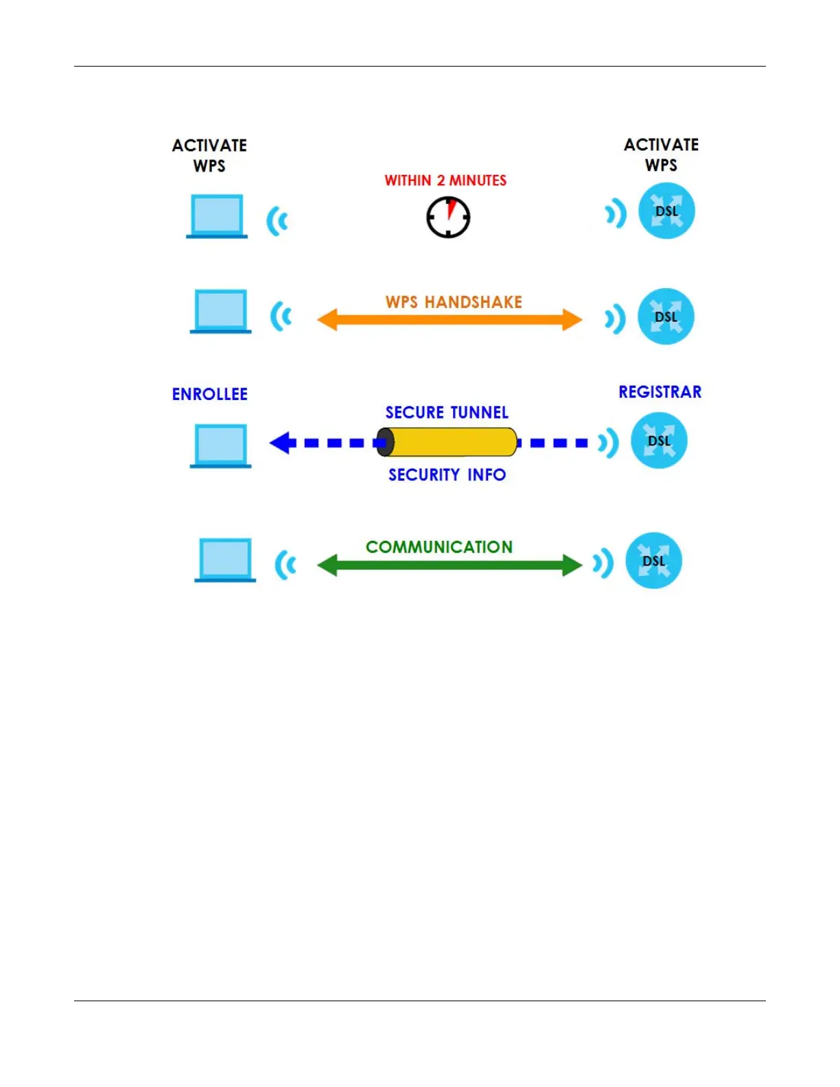 The roles of registrar and enrollee last only as long as the WPS setup process is active (two minutes). The