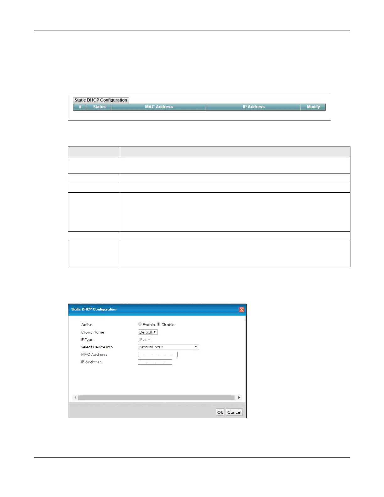 If you click Static DHCP Configuration in the Static DHCP screen or the Edit icon next to a static DHCP