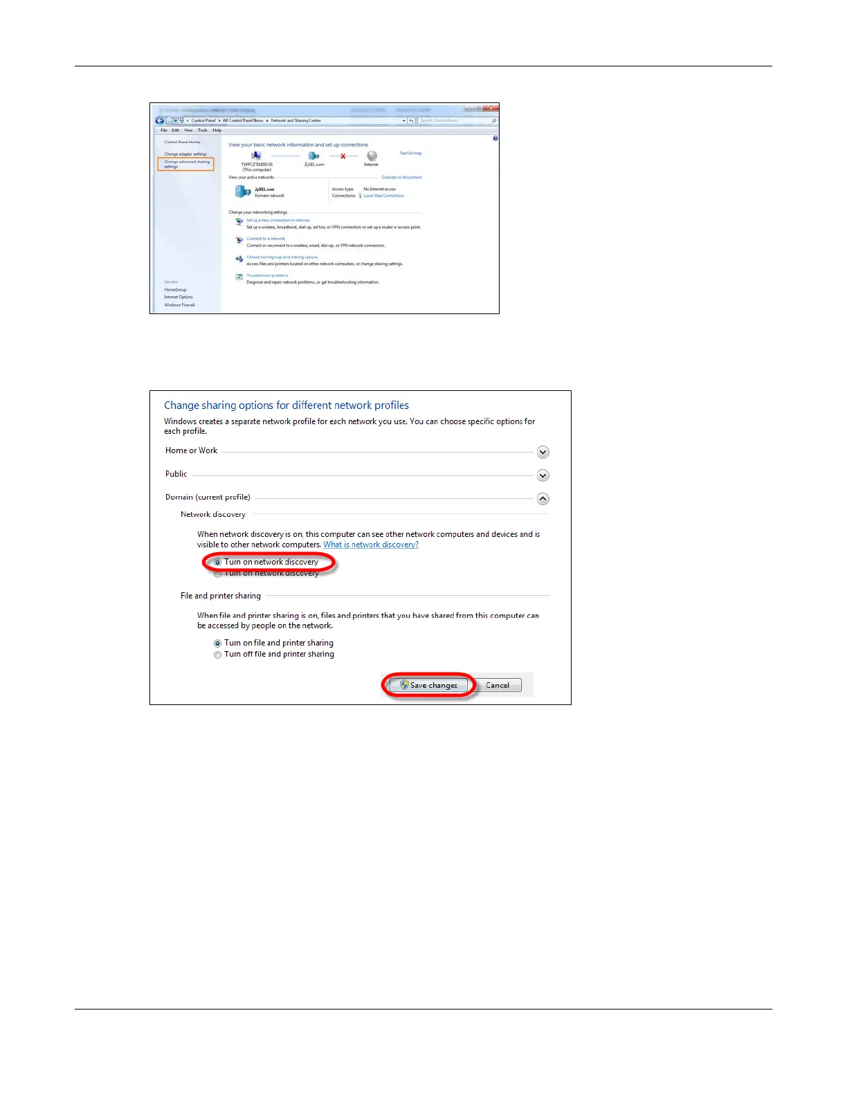 3 Select Turn on network discovery and click Save Changes. Network discovery allows your computer to