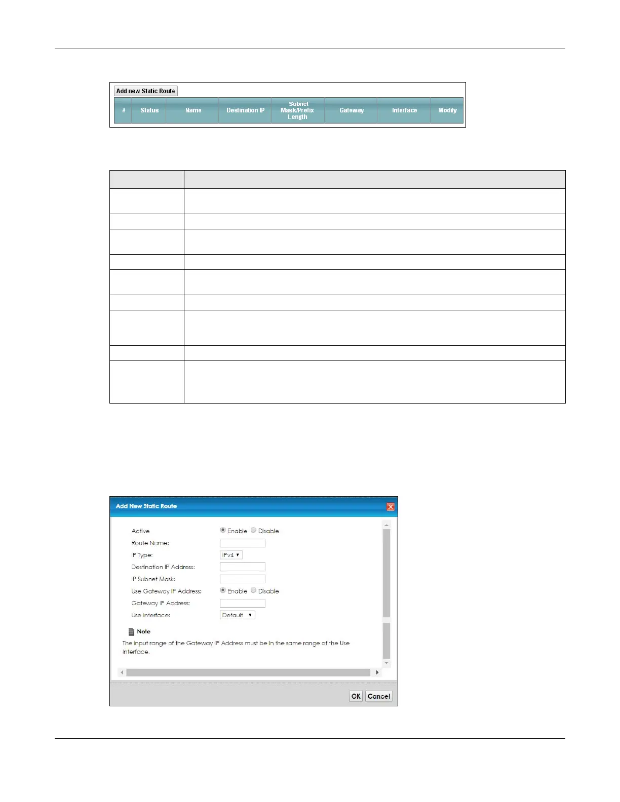 Table 37 Network Setting > Routing > Static Route