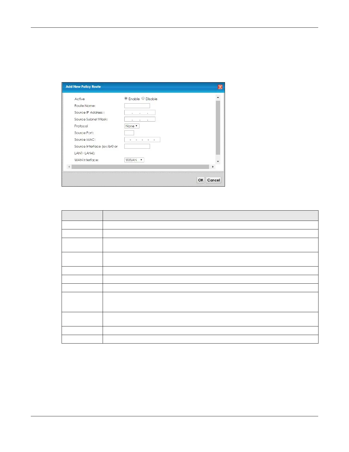 Active Select Enable or Disable to activate or deactivate the policy route.