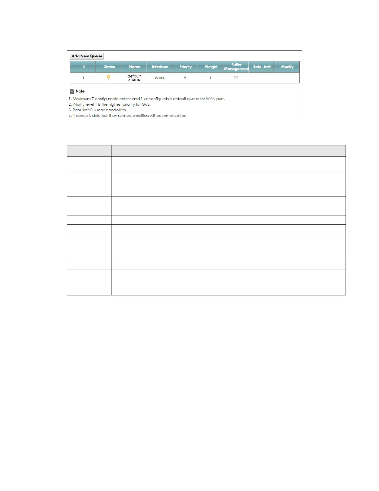Rate Limit This shows the maximum transmission rate allowed for traffic on this queue.