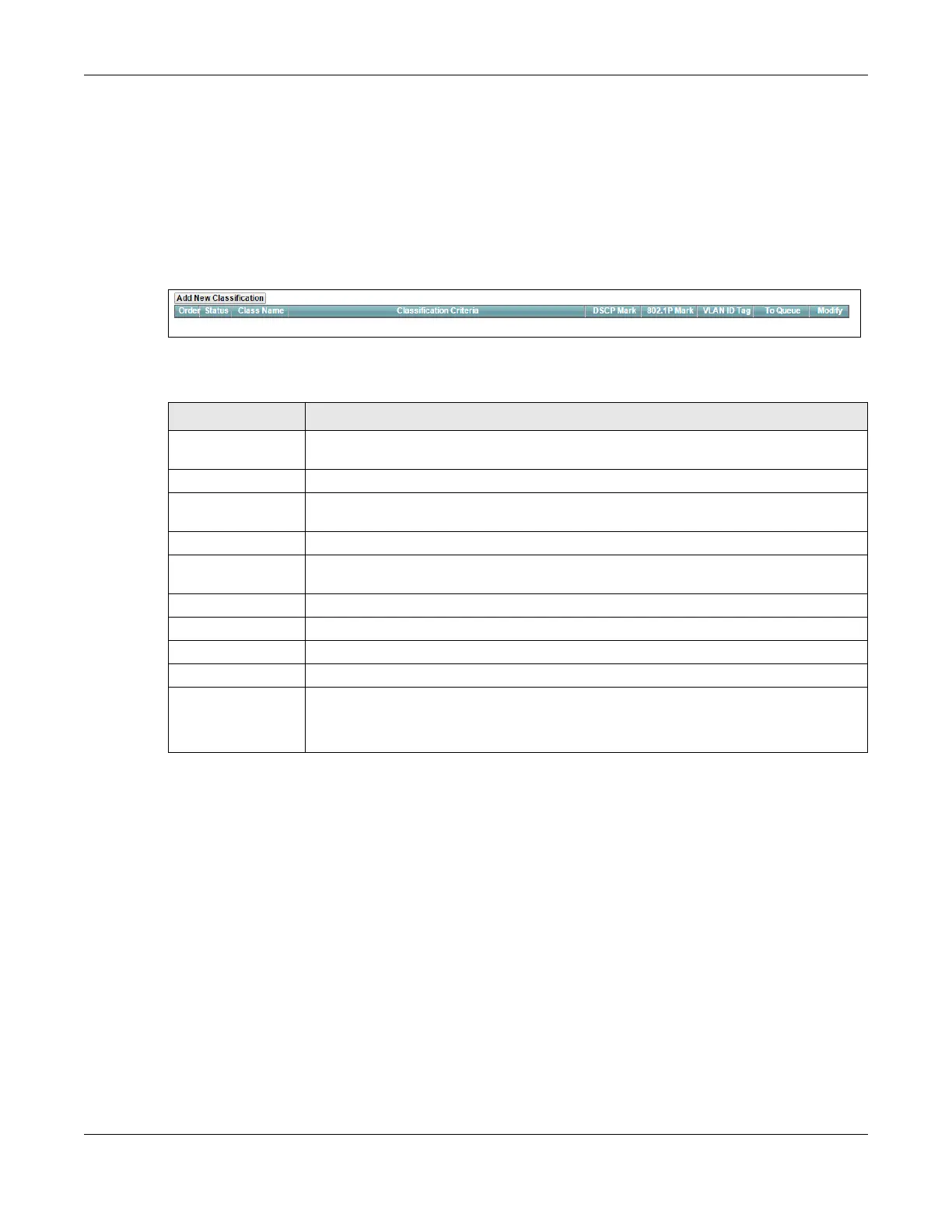 Click Network Setting > QoS > Classification Setup to open the following screen.