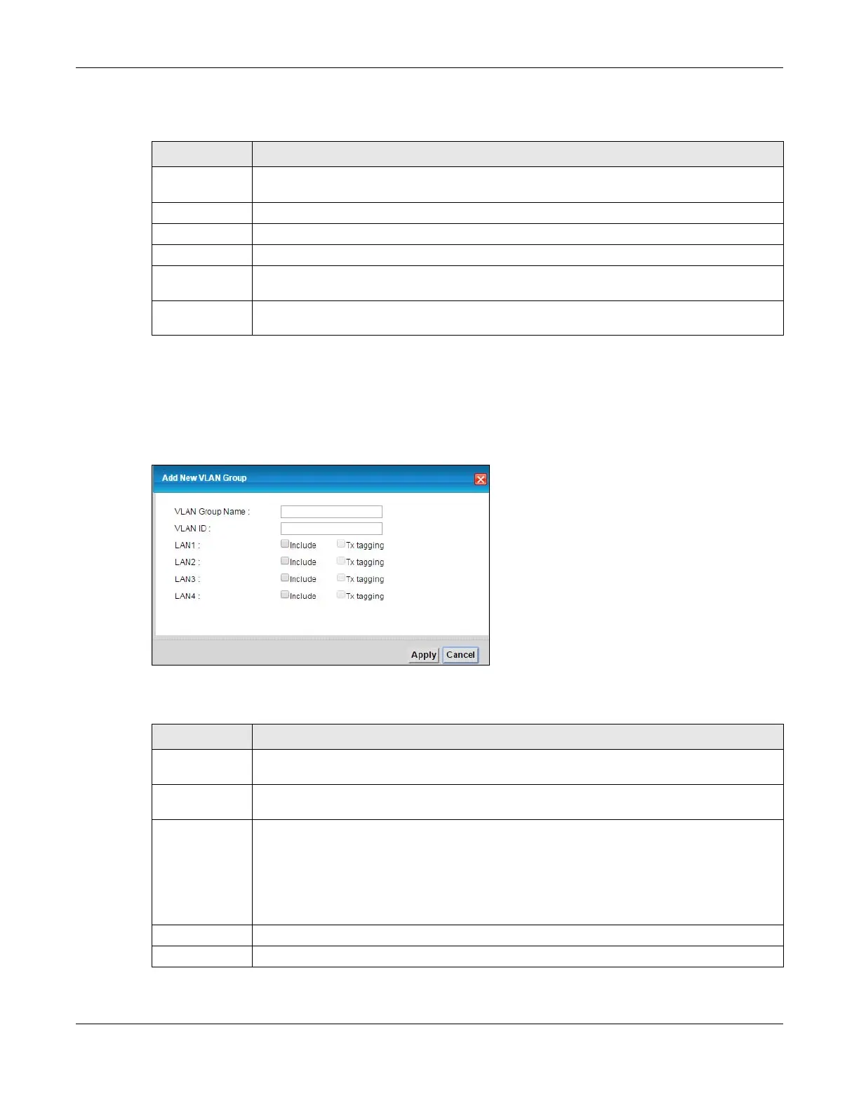 VLAN ID Enter a unique ID number, from 1 to 4,094, to identify this VLAN group. Outgoing traffic is tagged