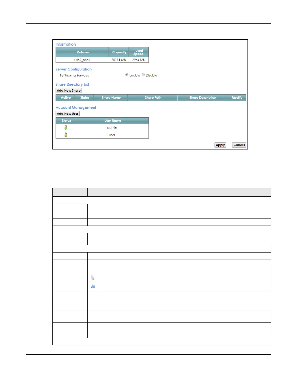 Note: Share Directory List field appears when you connect a USB device to the USB port.