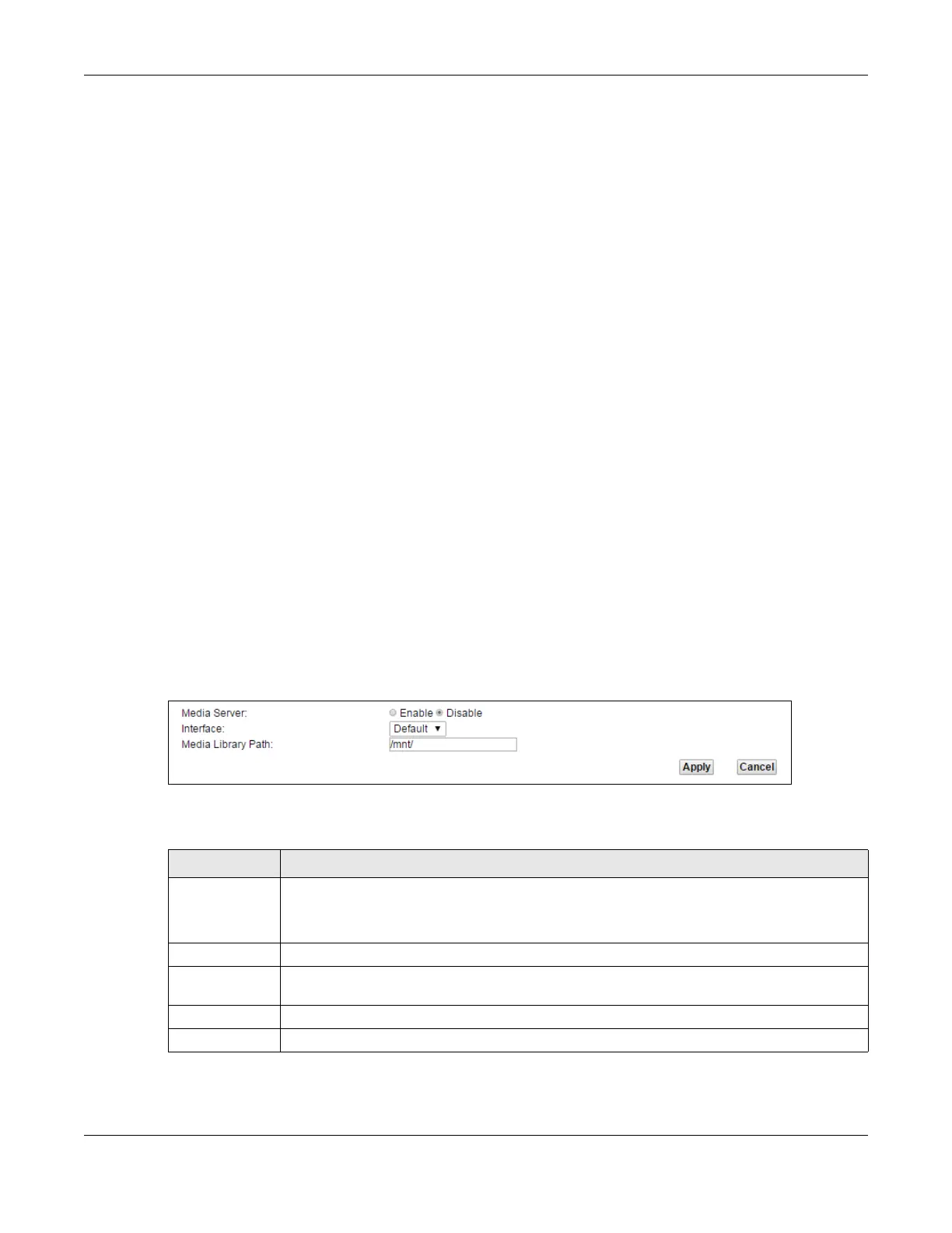Media Server Select Enable to have the VMG function as a DLNA-compliant media server.