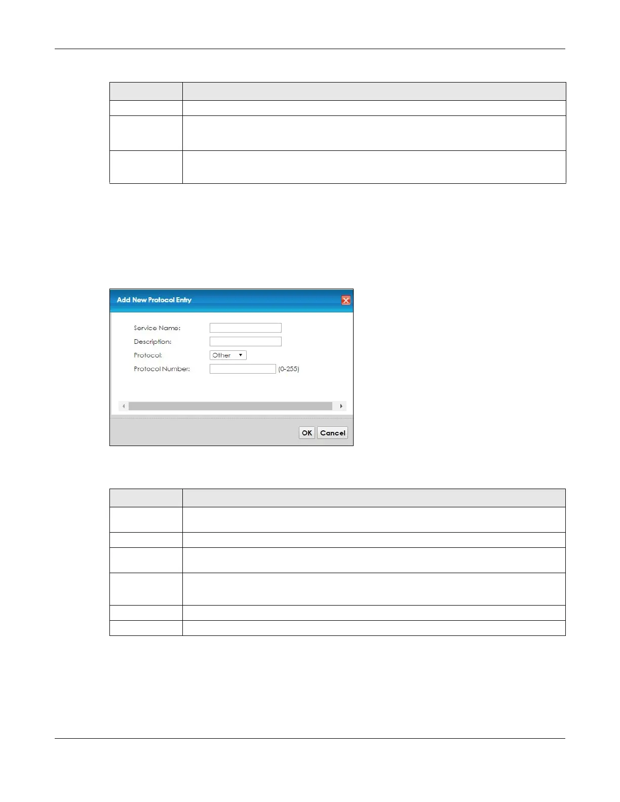 Table 82 Security > Firewall > Protocol: Add/Edit
