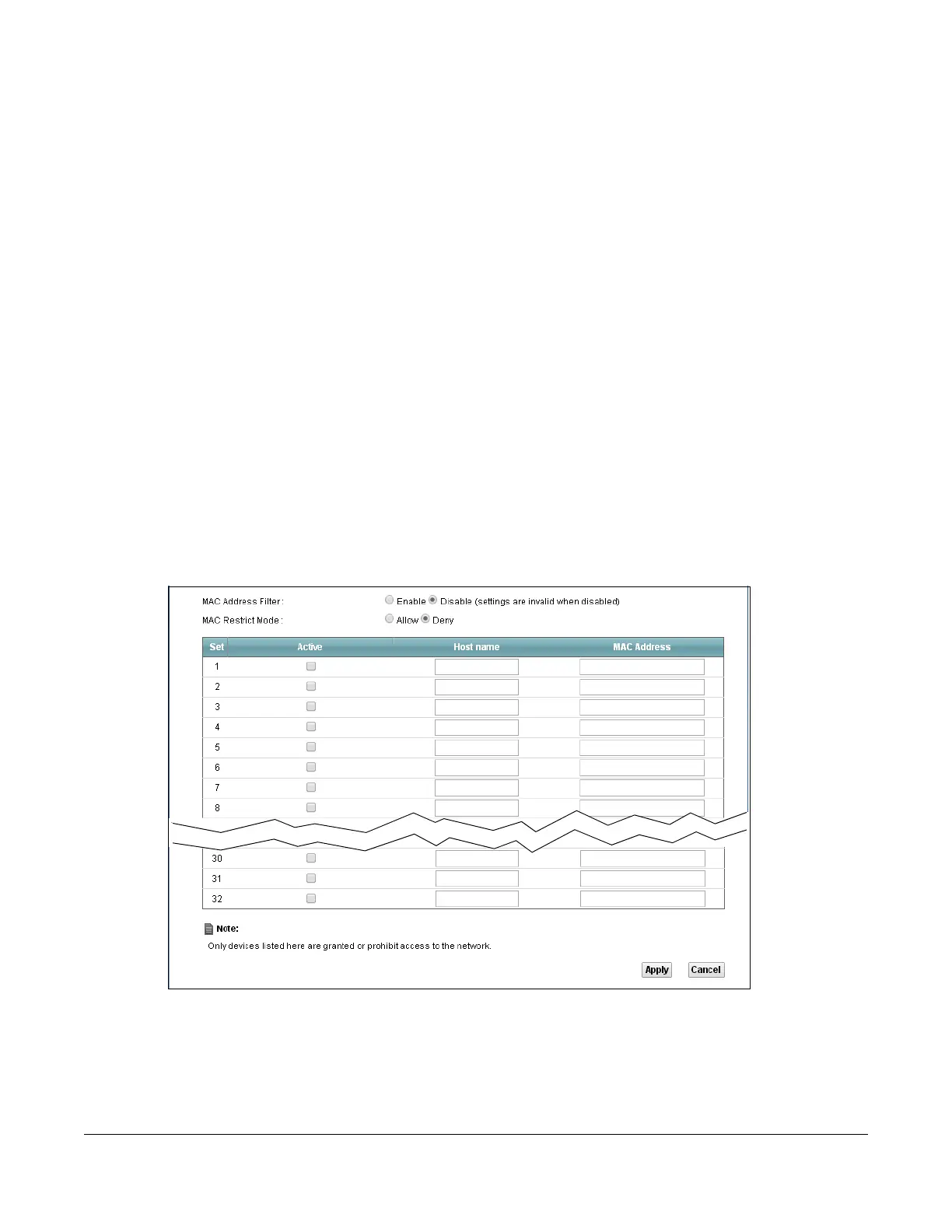 You can configure the VMG to permit access to clients based on their MAC addresses in the MAC Filter