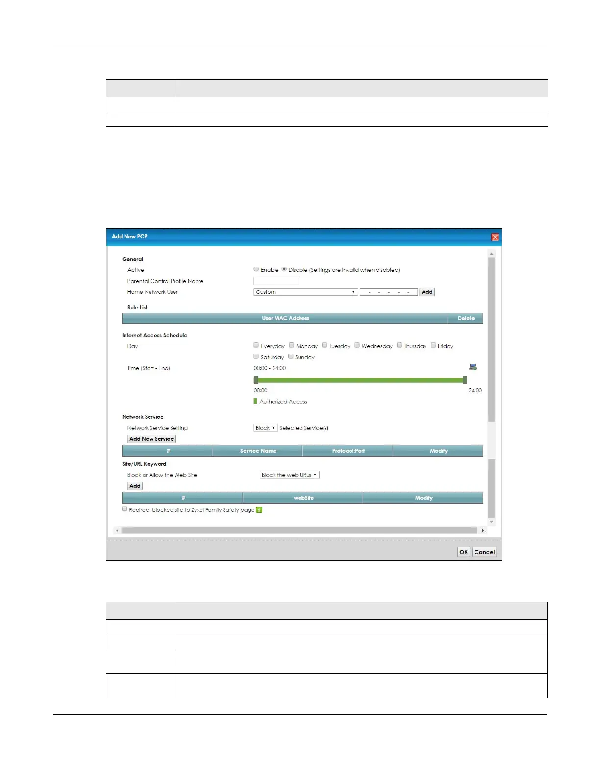 Table 87 Security > Parental Control (continued)