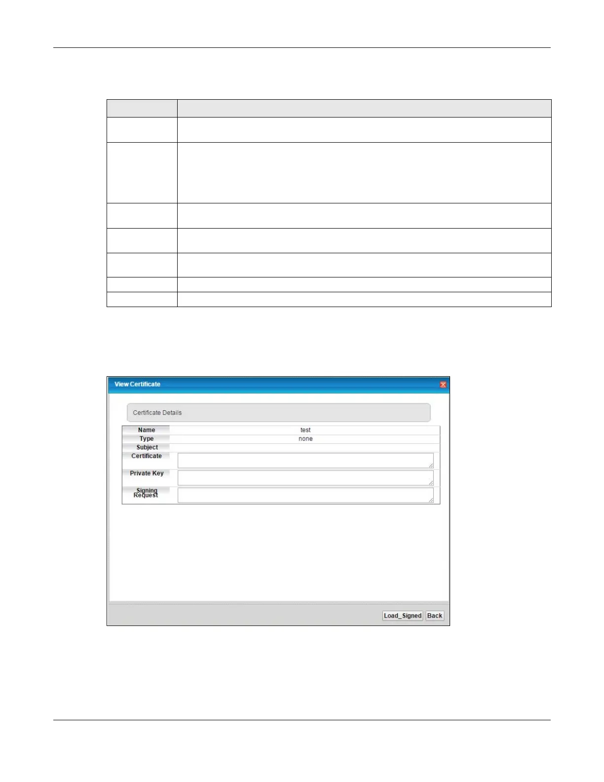 certificate into the VMG. Otherwise click Back to return to the Local Certificates screen.