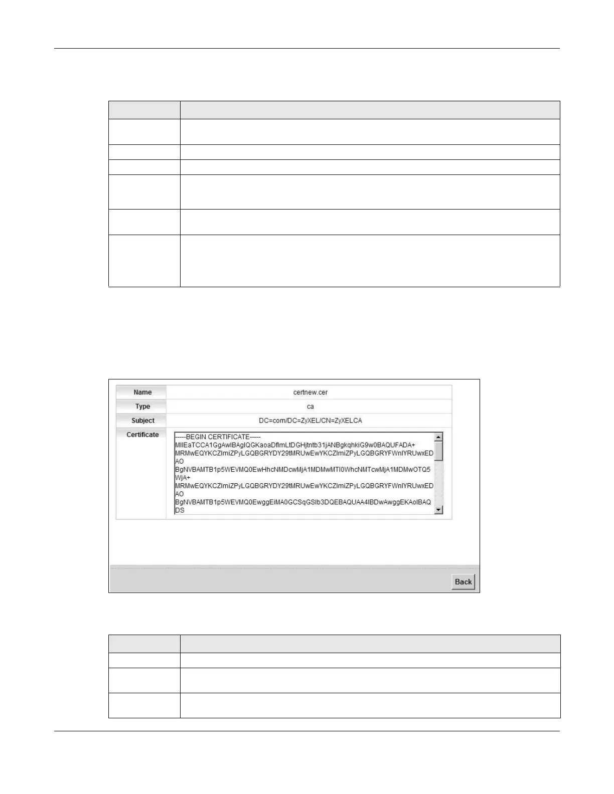 Modify Click the View icon to open a screen with an in-depth list of information about the certificate (or