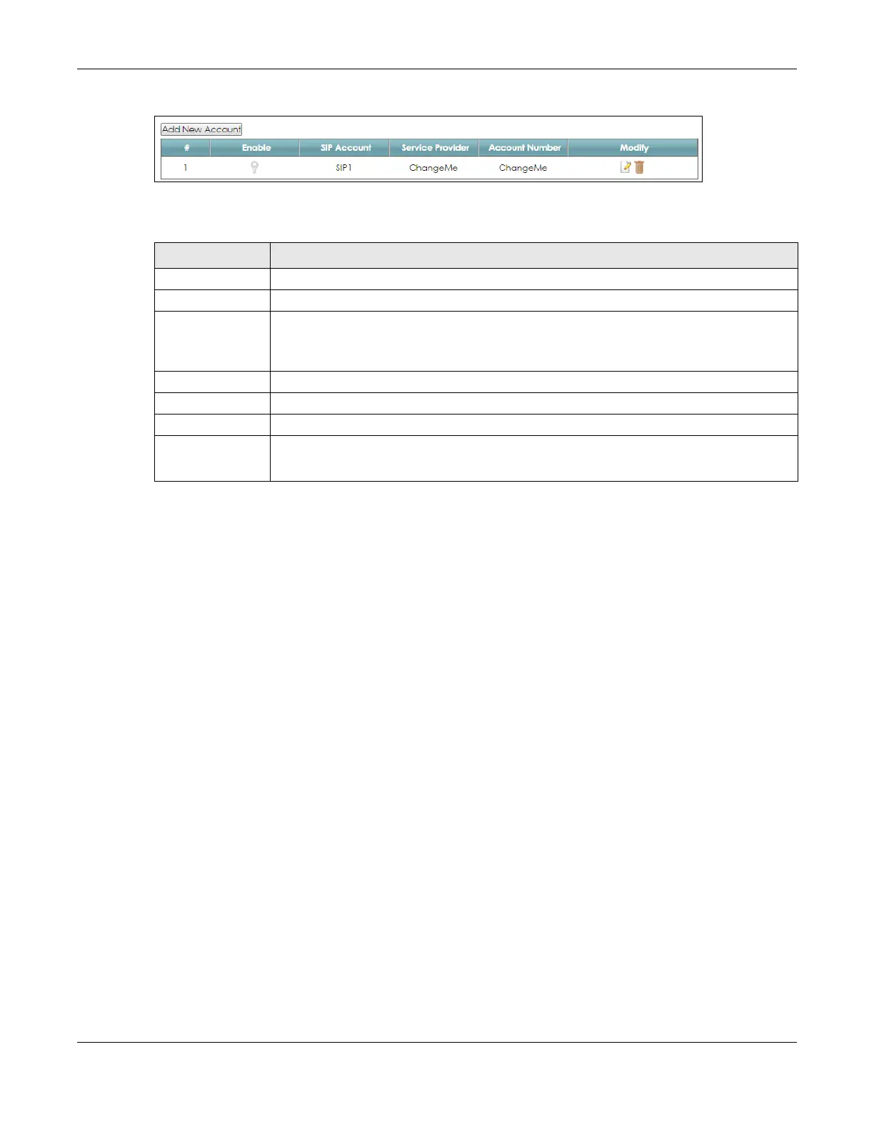 Add new account button or click the Edit icon of an entry in the VoIP > SIP > SIP Account screen.