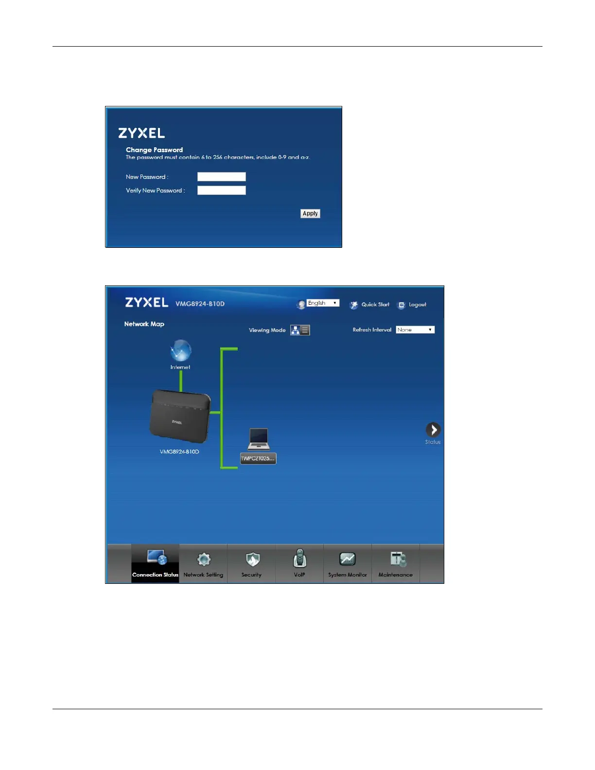 6 Click Status to display the Status screen, where you can view the VMG’s interface and system