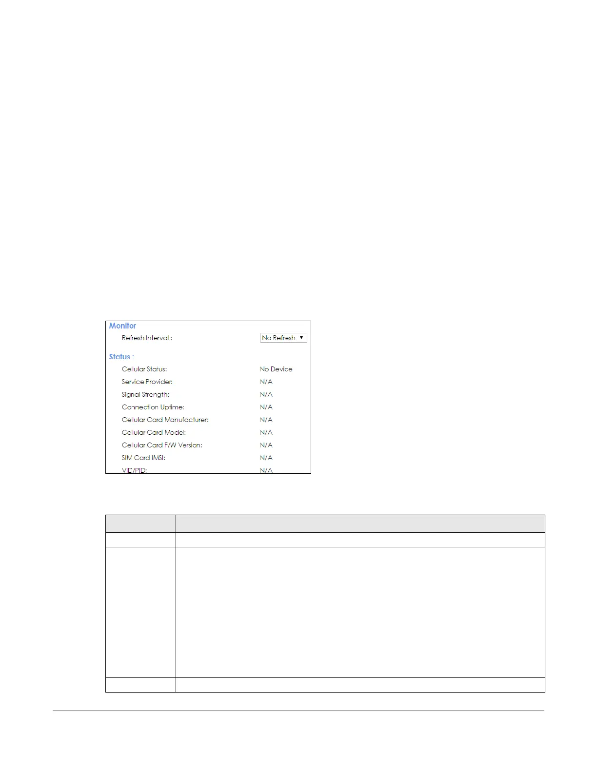 Refresh Interval Select how often you want the VMG to update this screen. Select No Refresh to stop refreshing.