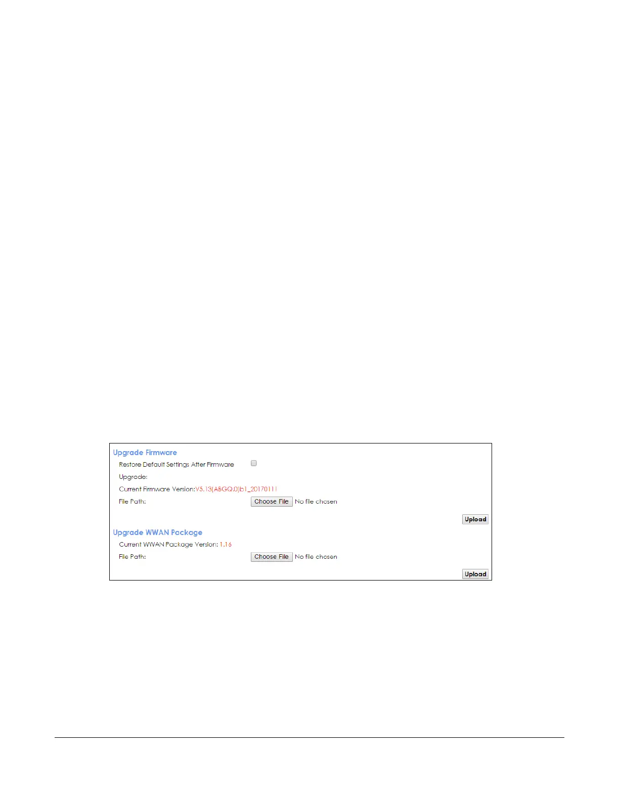 Click Maintenance > Firmware Upgrade to open the following screen. The upload process uses HTTP