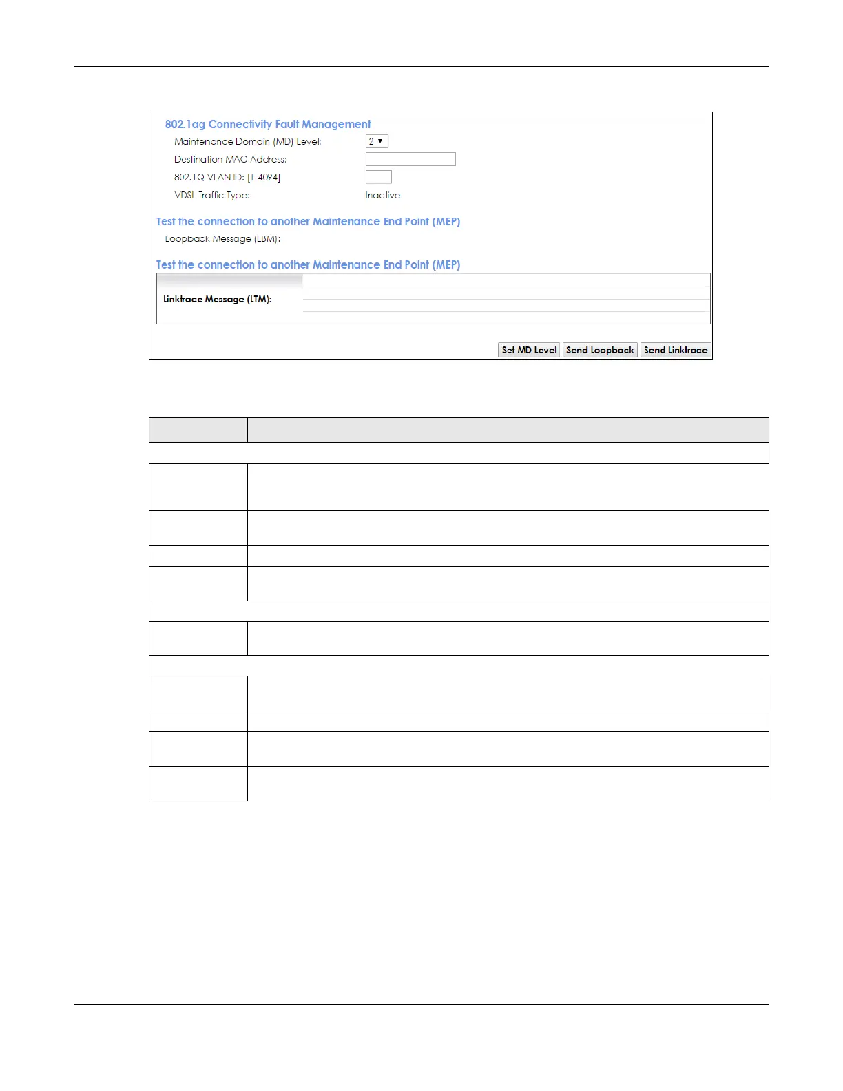 Table 142 Maintenance > Diagnostic > 802.1ag