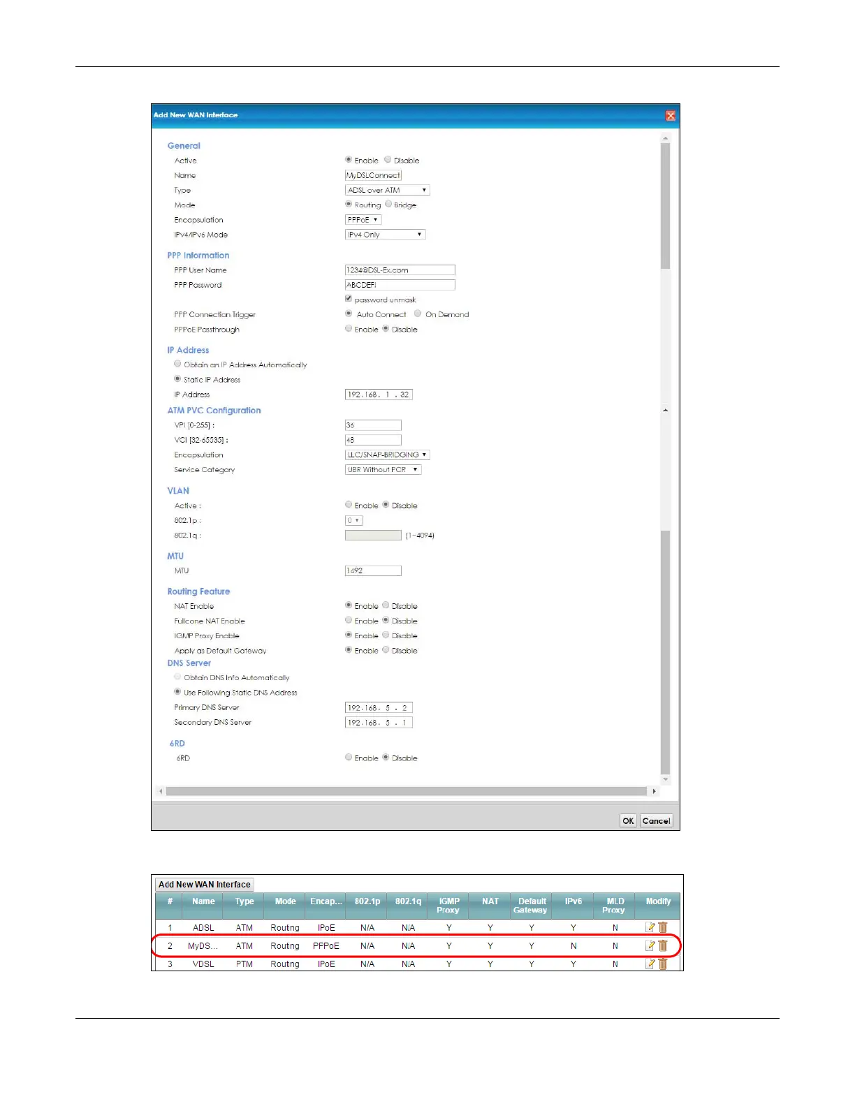 8 You should see a summary of your new DSL connection setup in the Broadband screen as follows.