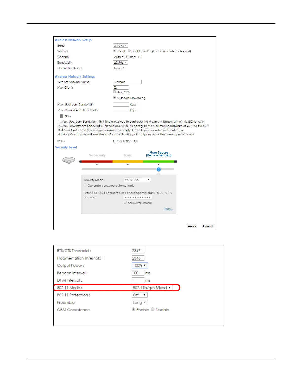2 Go to the Wireless > Others screen and select 802.11b/g/n Mixed in the 802.11 Mode field. Click Apply.