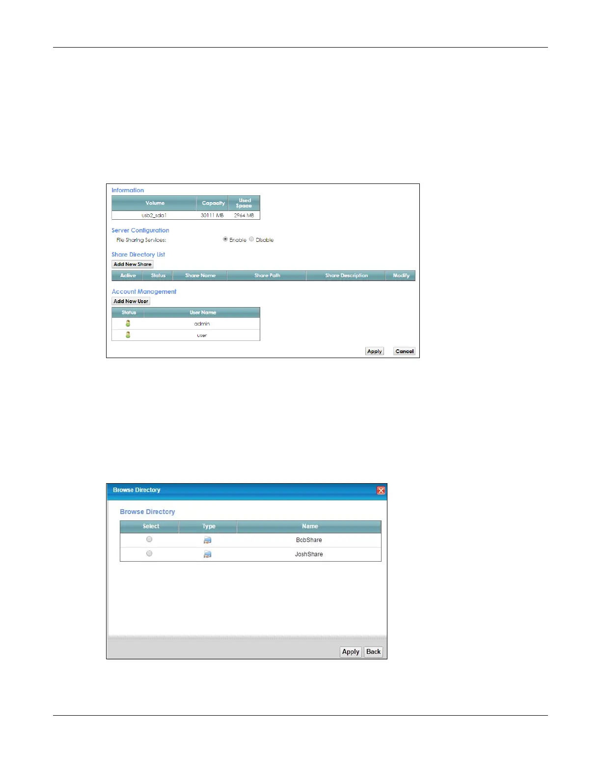 Before enabling file sharing in the VMG, please set up your shares beforehand in the USB. Also, the