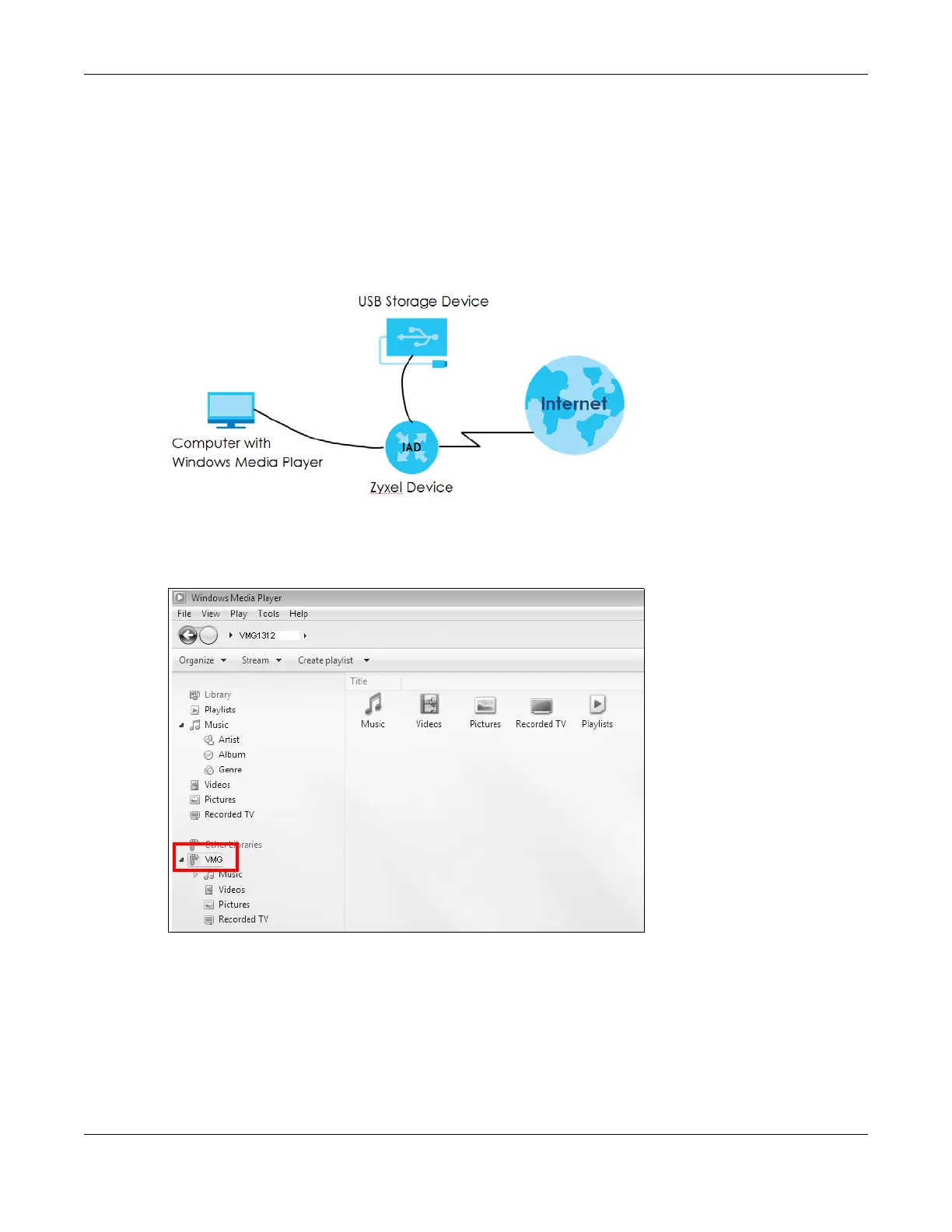 This section shows you how to play the media files on the USB storage device connected to your VMG