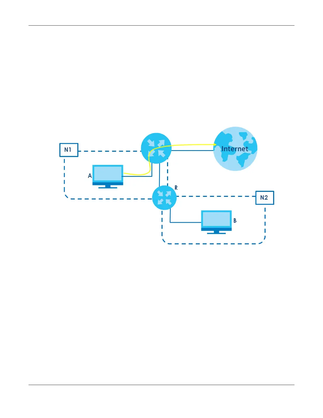 In the following figure, router R is connected to the VMG’s LAN. R connects to two networks, N1