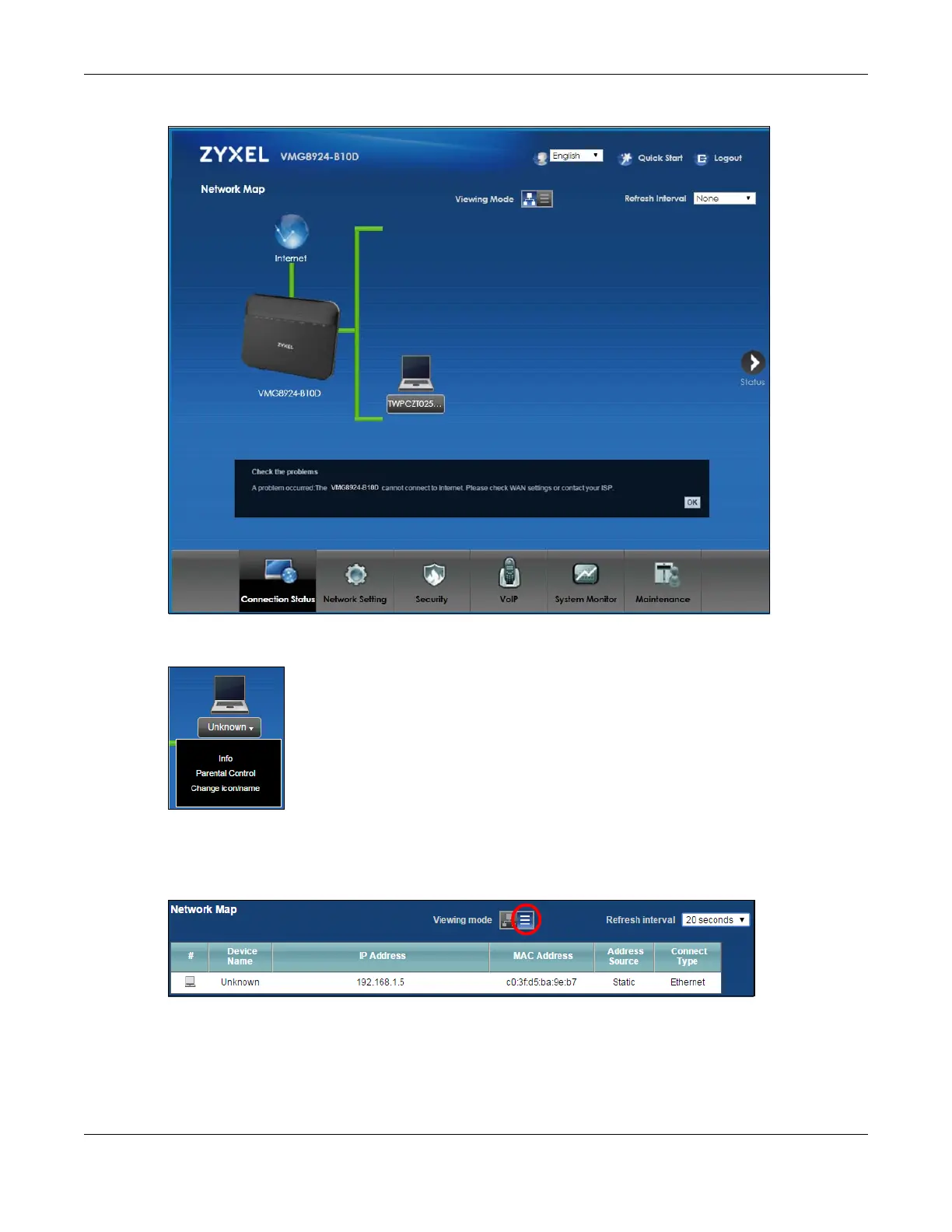 Use this screen to view the status of the VMG. Click Status to open this screen.