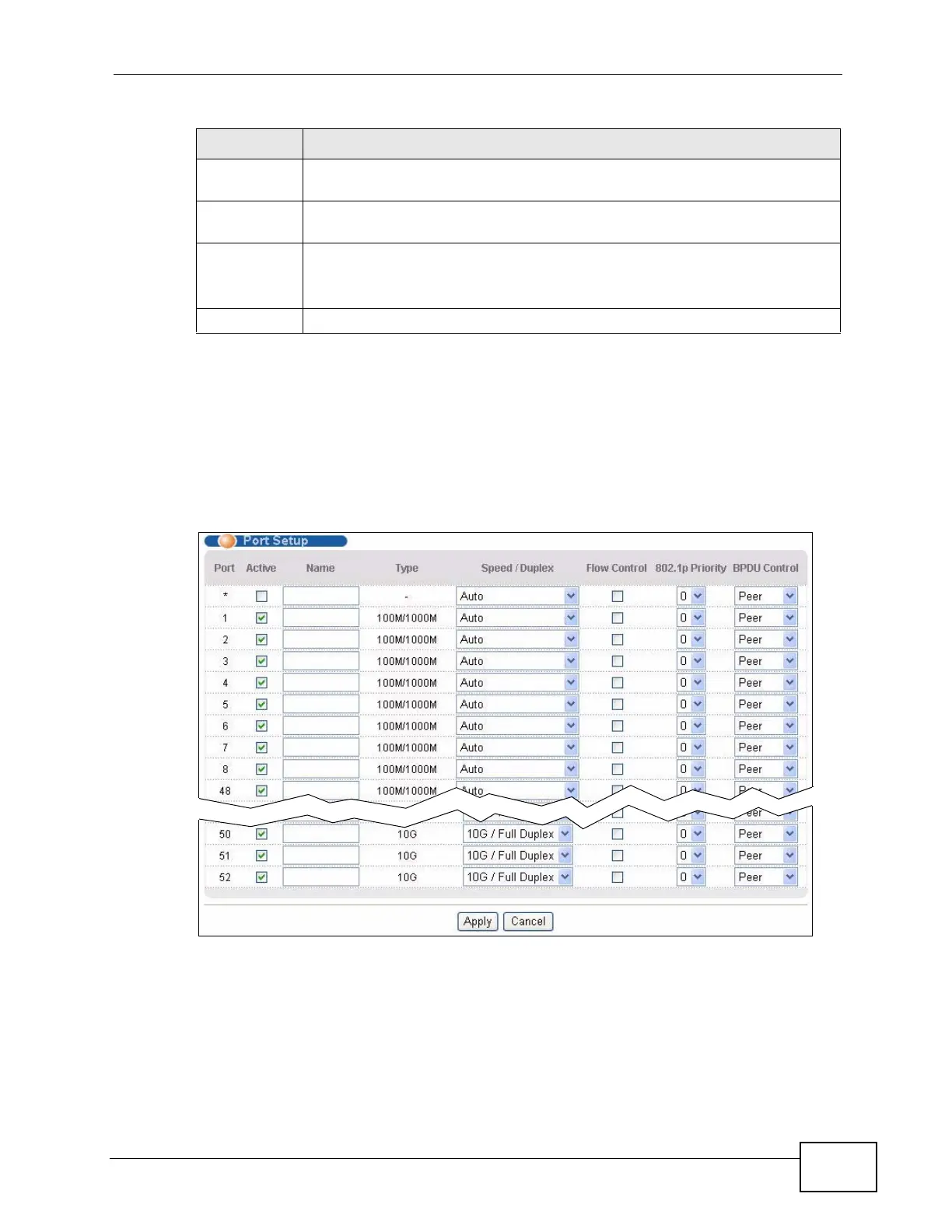 Use this screen to configure Switch port settings. Click Basic Setting > Port