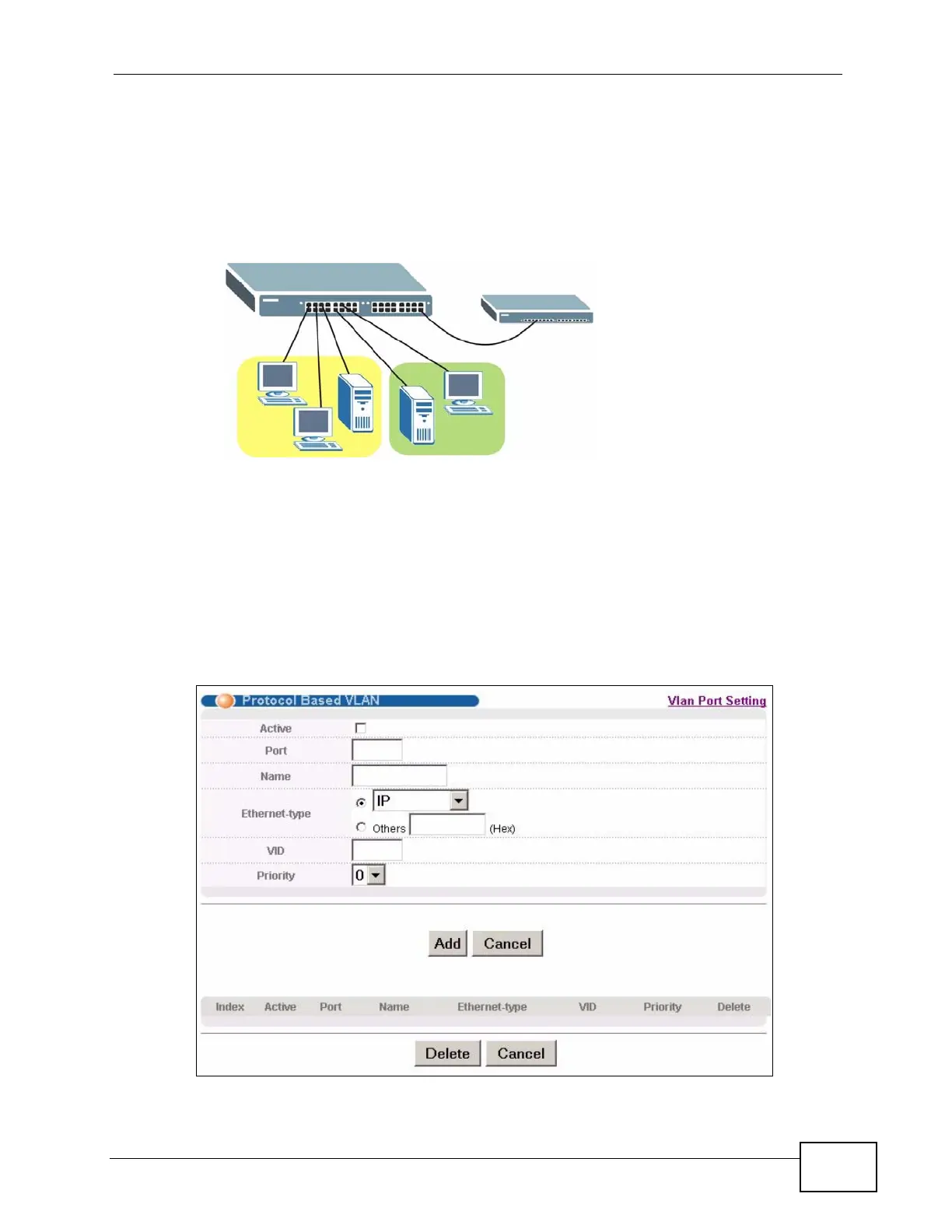 Click Protocol Based VLAN in the VLAN Port Setting screen to display the