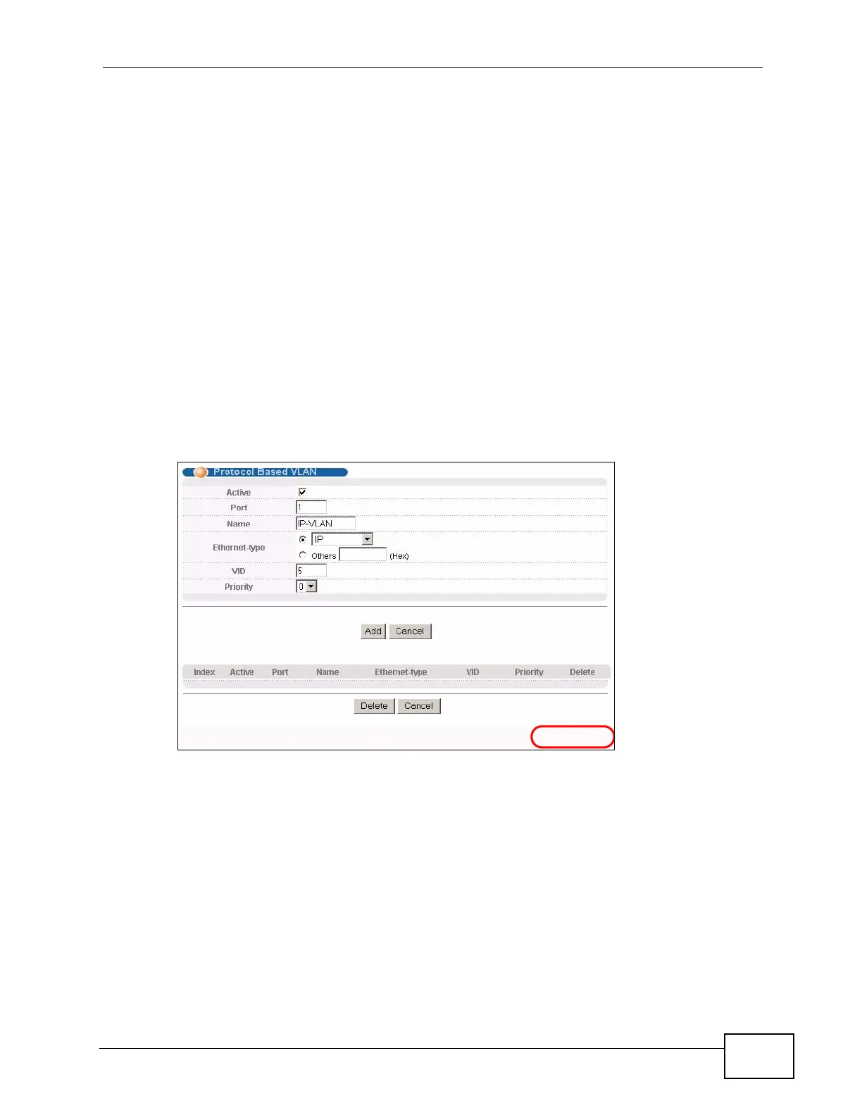 1 Click the index number of the protocol based VLAN entry. Click 1