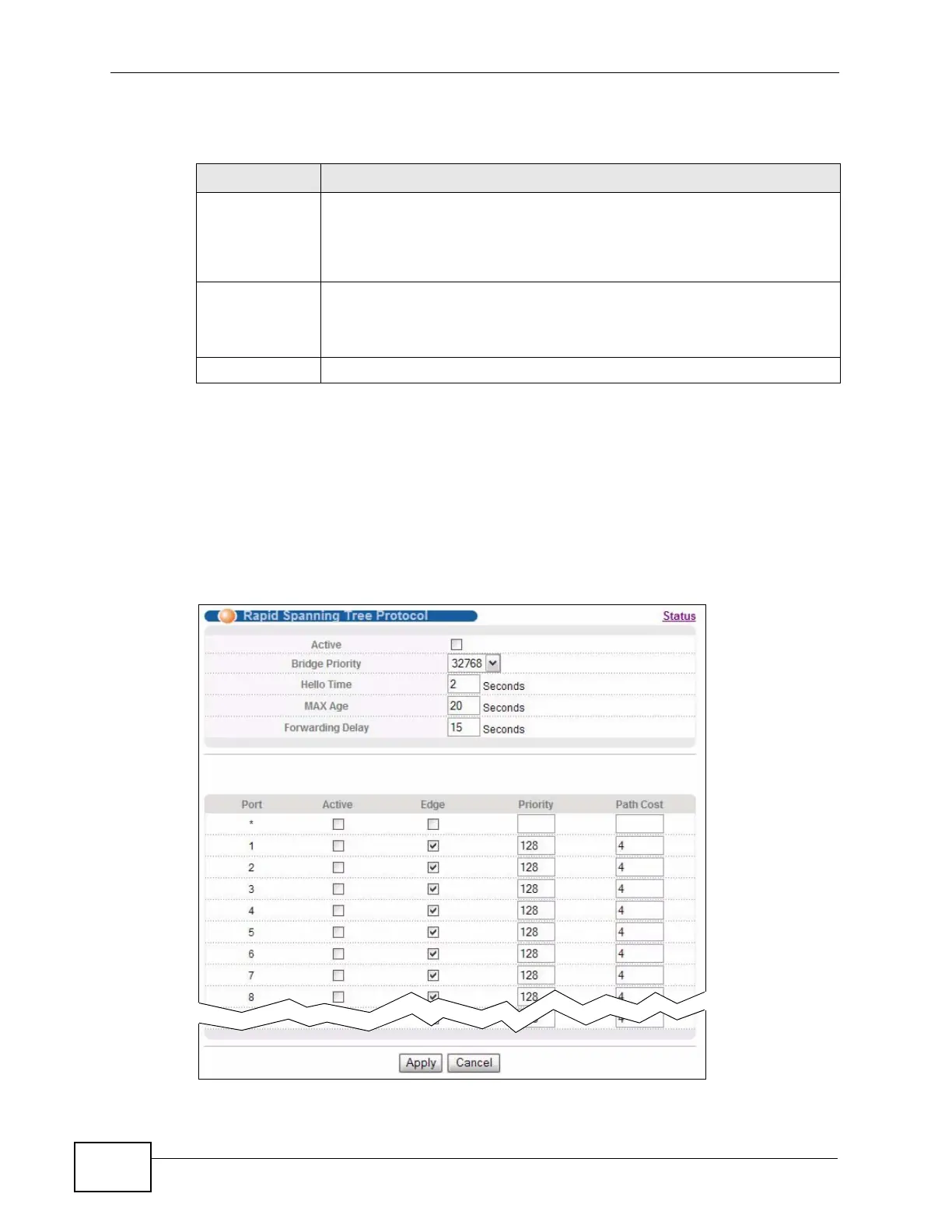 Table 28 Advanced Application > Spanning Tree Protocol > Configuration