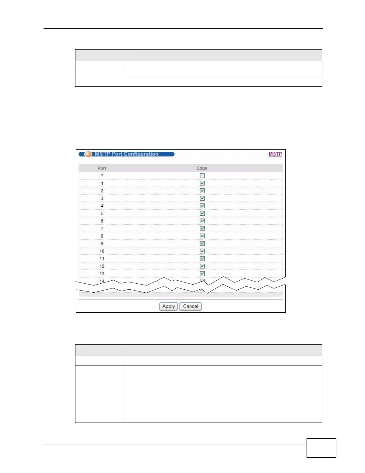 Table 34 Advanced Application > Spanning Tree Protocol > MSTP > Port
