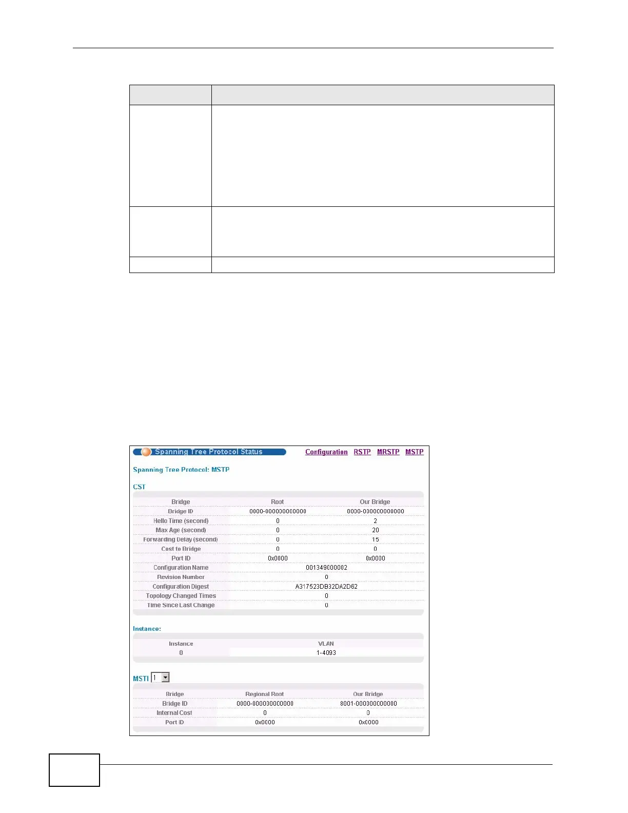 Figure 74 Advanced Application > Spanning Tree Protocol > Status: MSTP