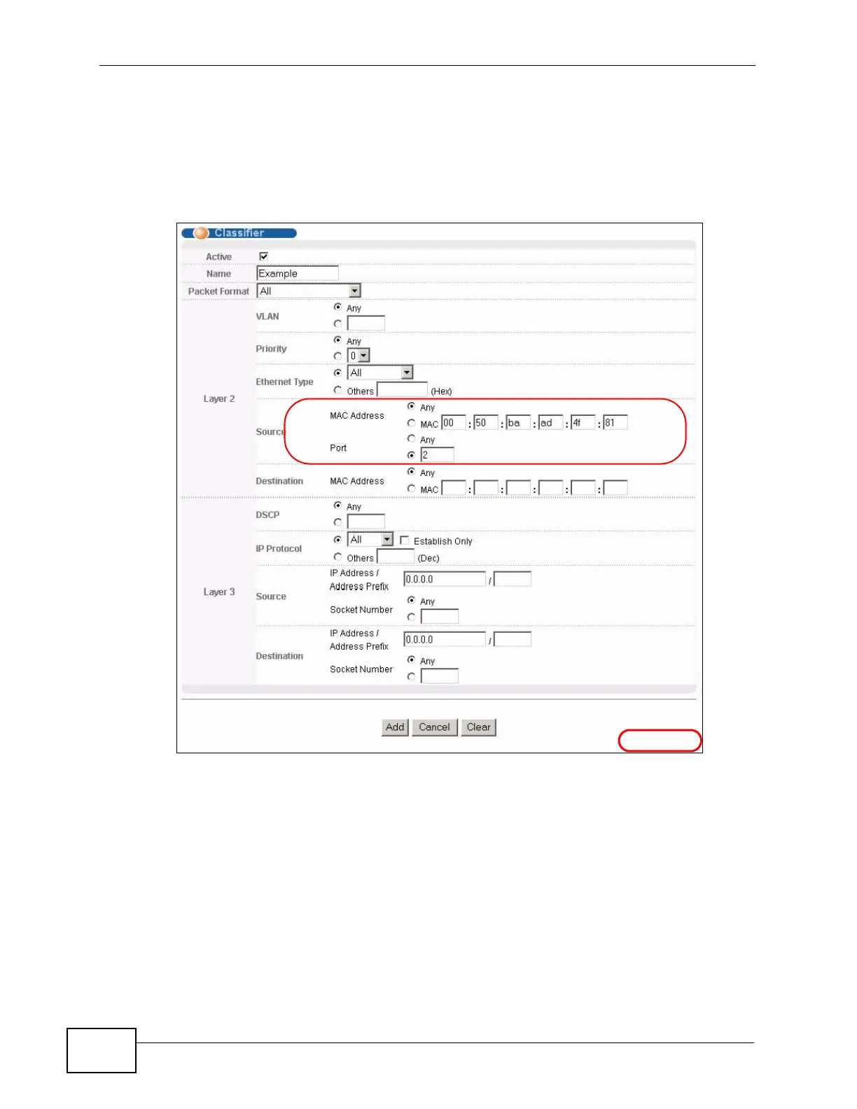 traffic from MAC address 00:50:ba:ad:4f:81 on port 2.